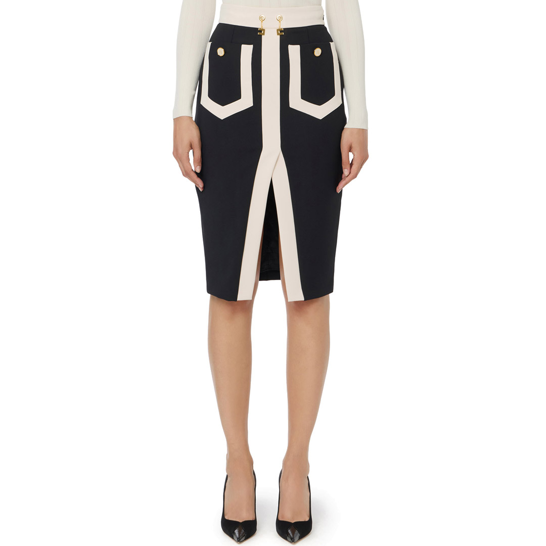 Elisabetta Franchi Gonna Color Block In Doppio Crepe Stretch Nero Got0156E2 153135