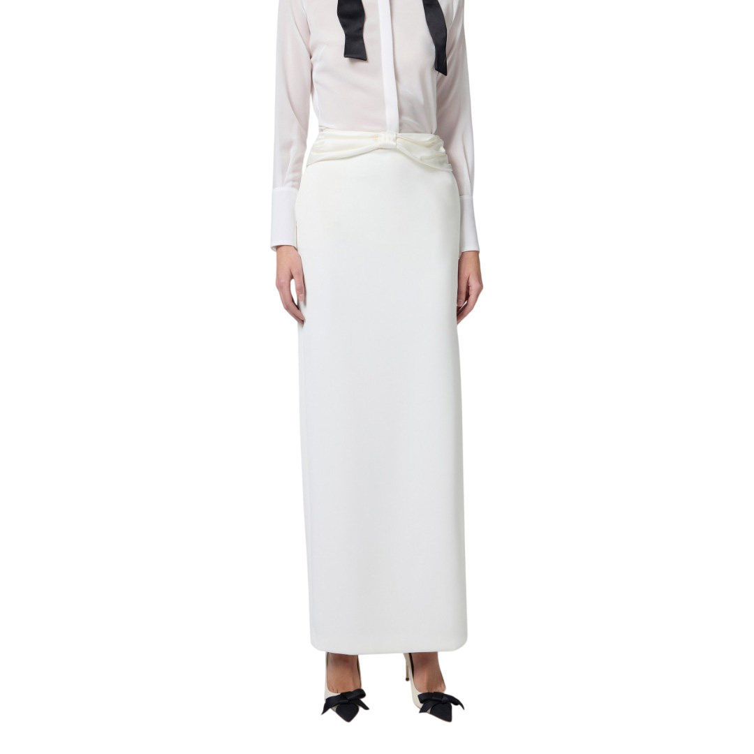 Elisabetta Franchi Gonna In Crepe Con Fiocco In Raso Avorio Go10151E2 139913