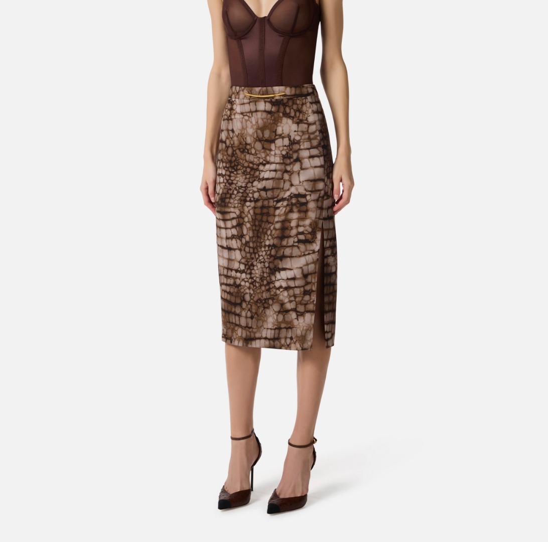 Elisabetta Franchi Gonna In Jersey Leggero Con Stampa Alligatore Cacao Go14961E2 172257
