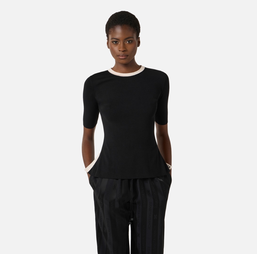 Elisabetta Franchi Maglia Con Bande In Viscosa Lucida Nero Mk67S61E2 171566