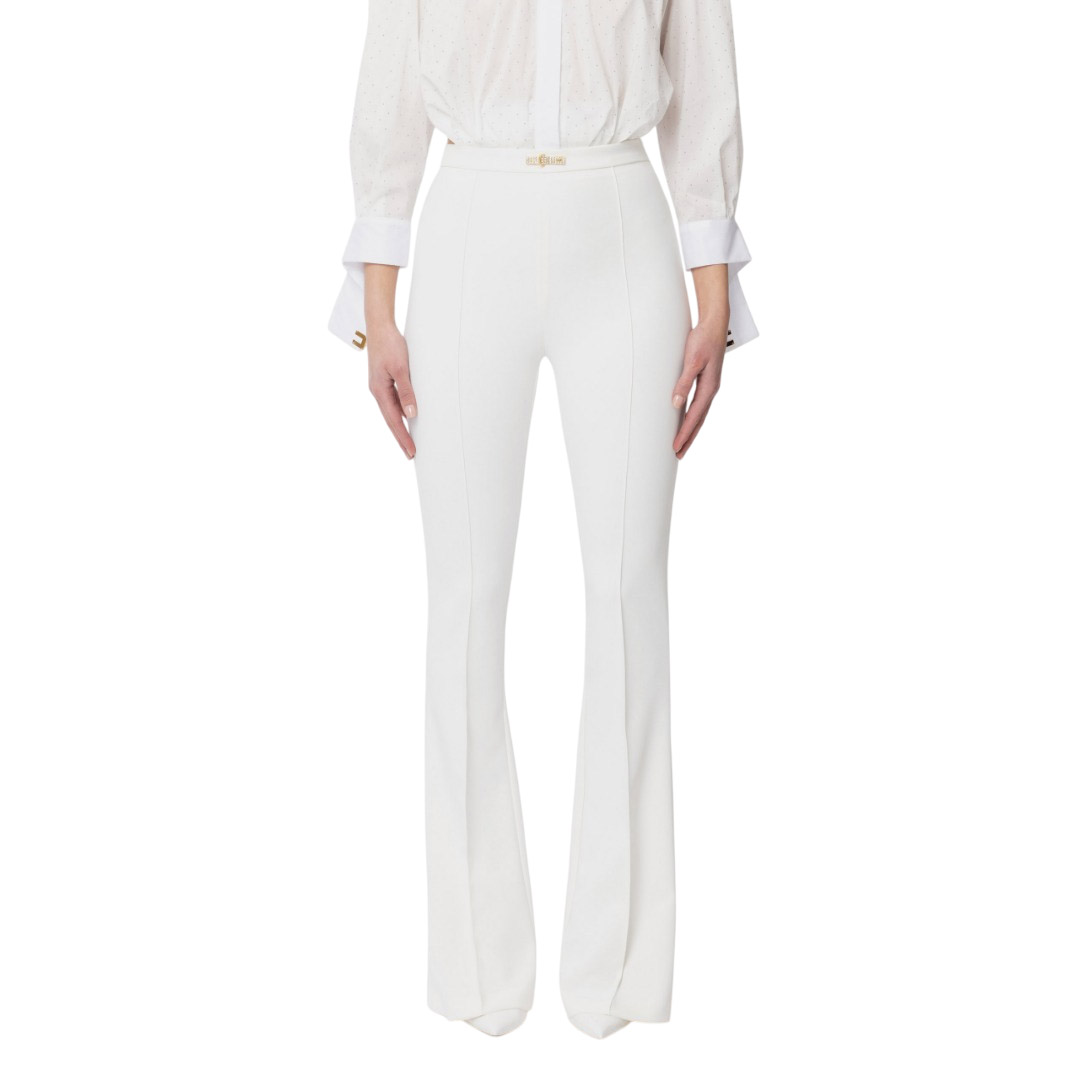 Elisabetta Franchi Pantalone A Zampa In Doppio Crepe Leggero Avorio Pa09952E2 139601