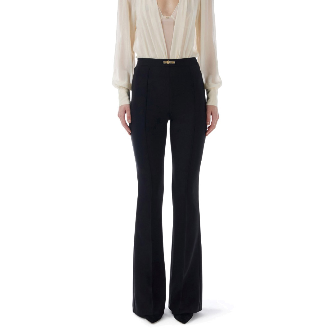 Elisabetta Franchi Pantalone A Zampa In Doppio Crepe Leggero Nero Pa09952E2 139604