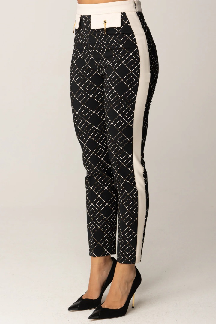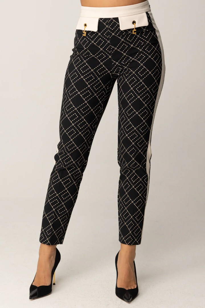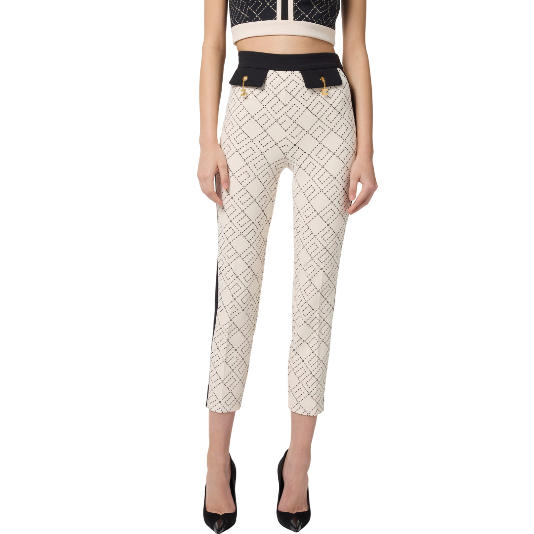Elisabetta Franchi Pantalone Bi Color In Doppio Crepe Con Stampa Pas0156E2 153521