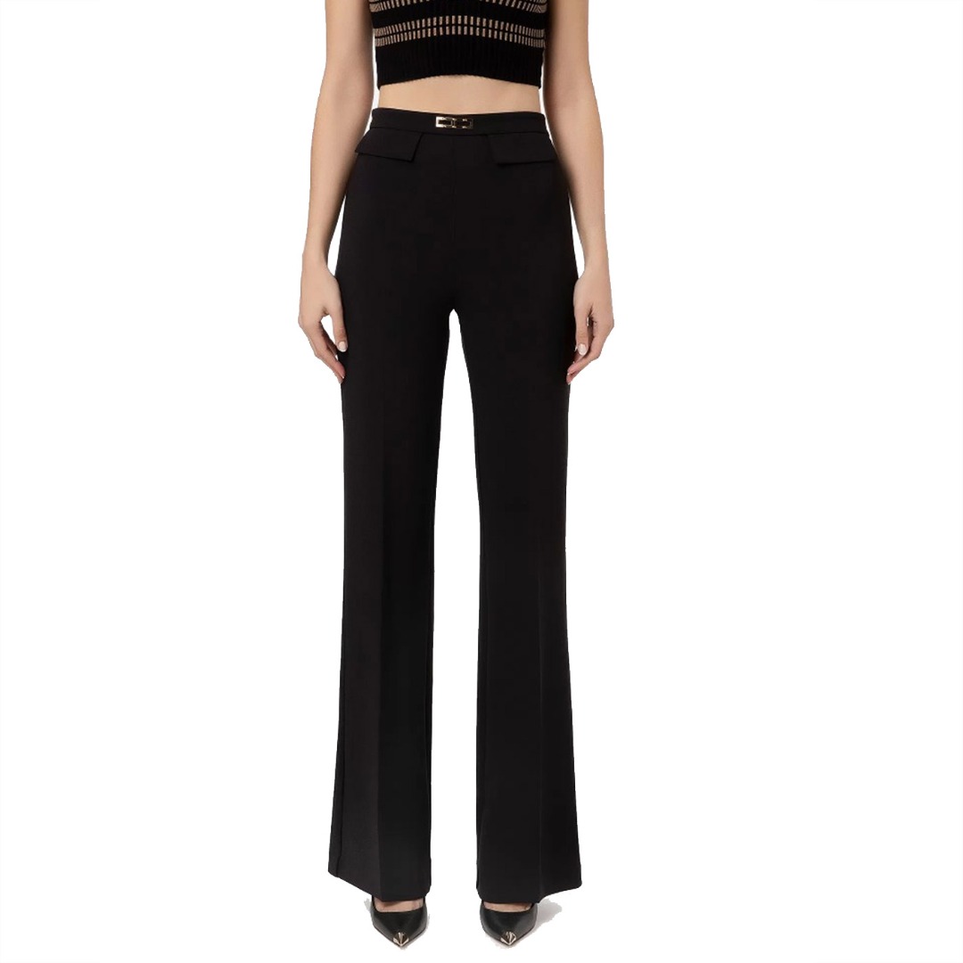 Elisabetta Franchi Pantalone In Doppio Crepe Stretch Dalla Vestibilita A Palazzo Nero Pa04931E2 76995