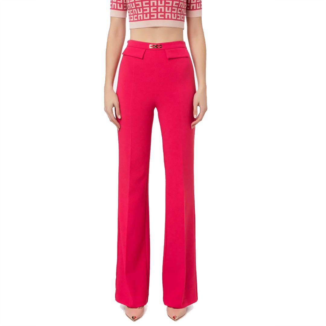 Elisabetta Franchi Pantalone In Doppio Crepe Stretch Dalla Vestibilita A Palazzo Fuxia Pa04931E2 77347