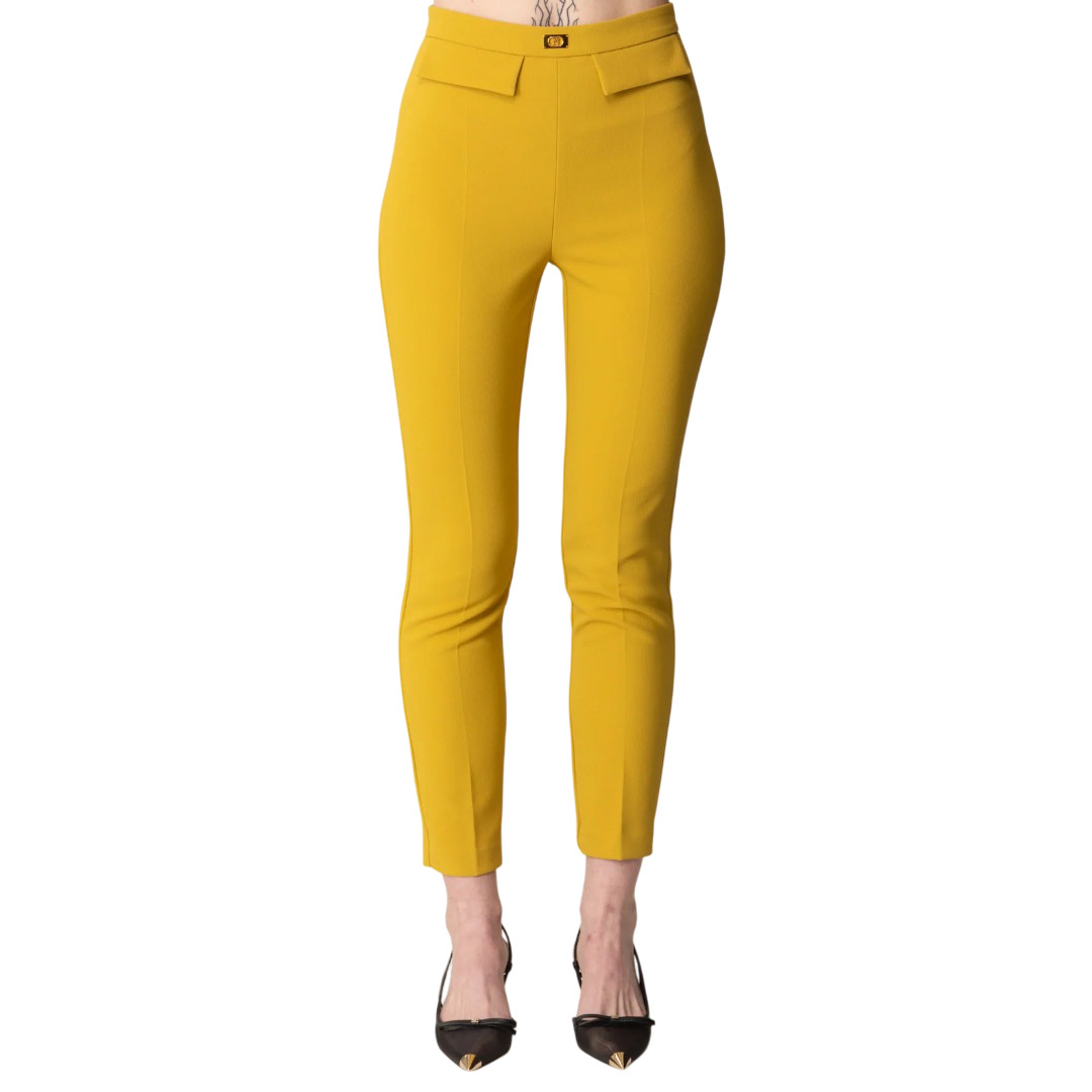 Elisabetta Franchi Pantalone Slim In Crepe Con Placca Logo Curry Pa07751E2 139657