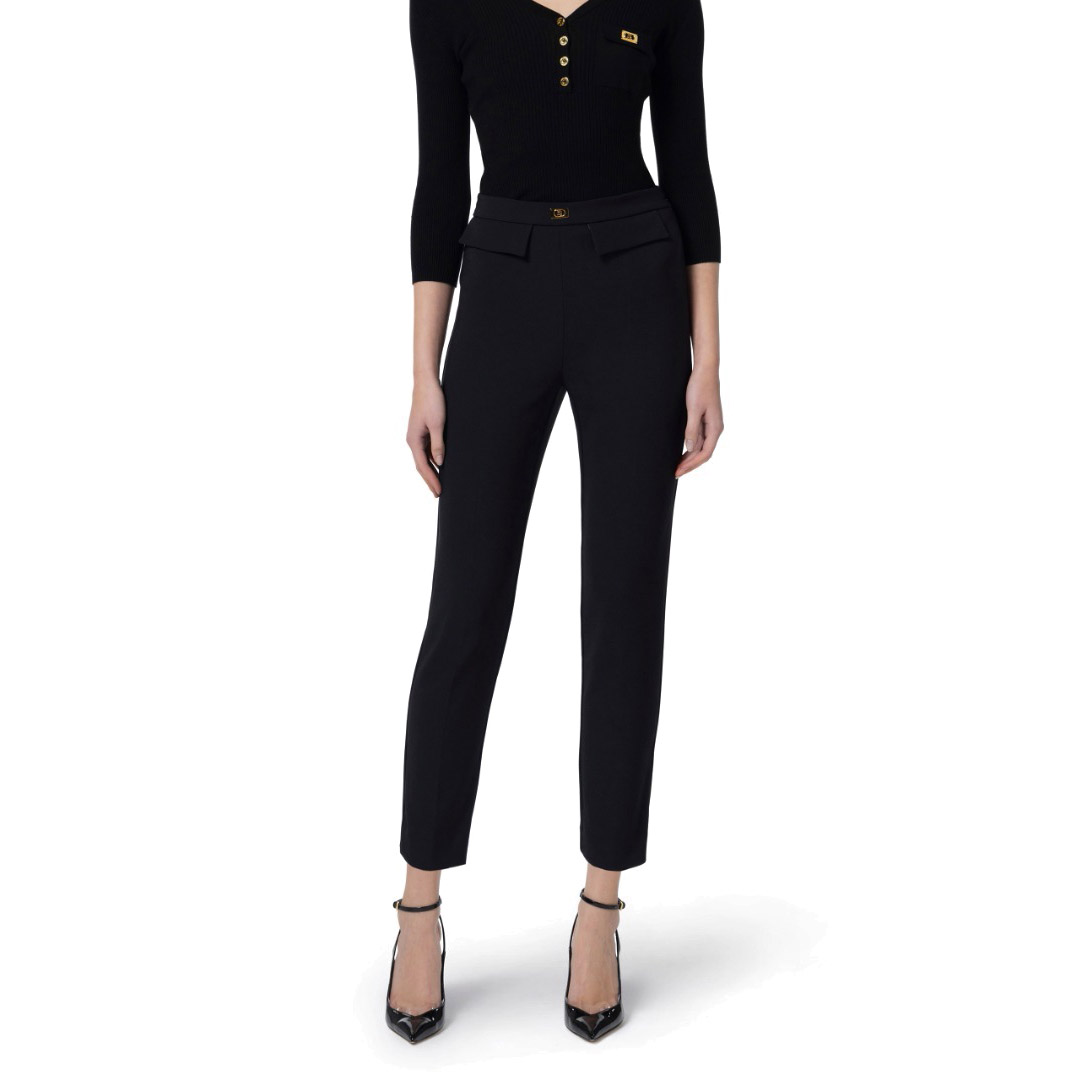 Elisabetta Franchi Pantalone Slim In Crepe Con Placca Logo Nero Pa07751E2 139662