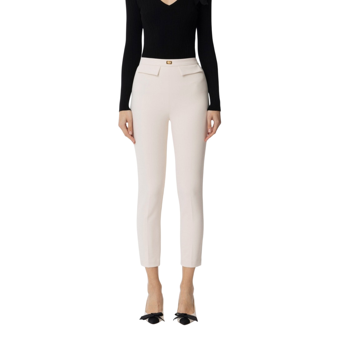 Elisabetta Franchi Pantalone Slim In Crepe Con Placca Logo Burro Pa07751E2 151773