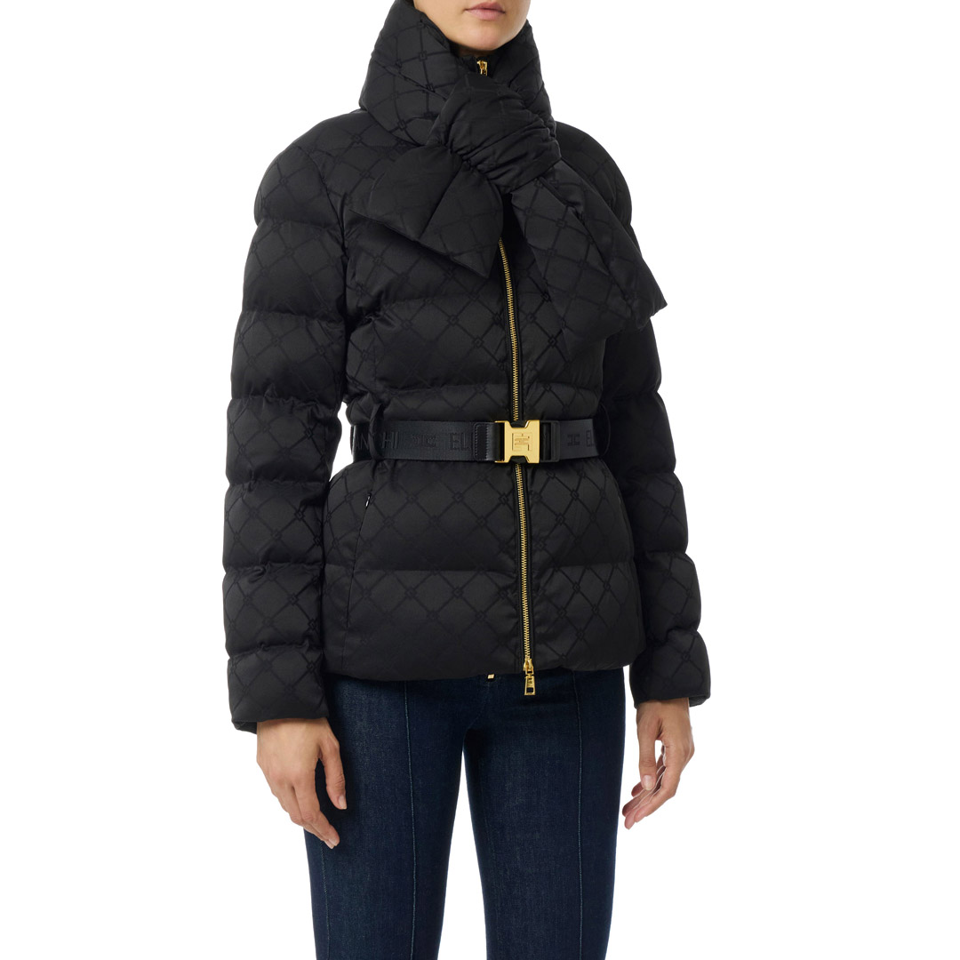 Elisabetta Franchi Piumino In Tessuto Vela Jacquard Con Cintura Nero Pi83D56E2 160162
