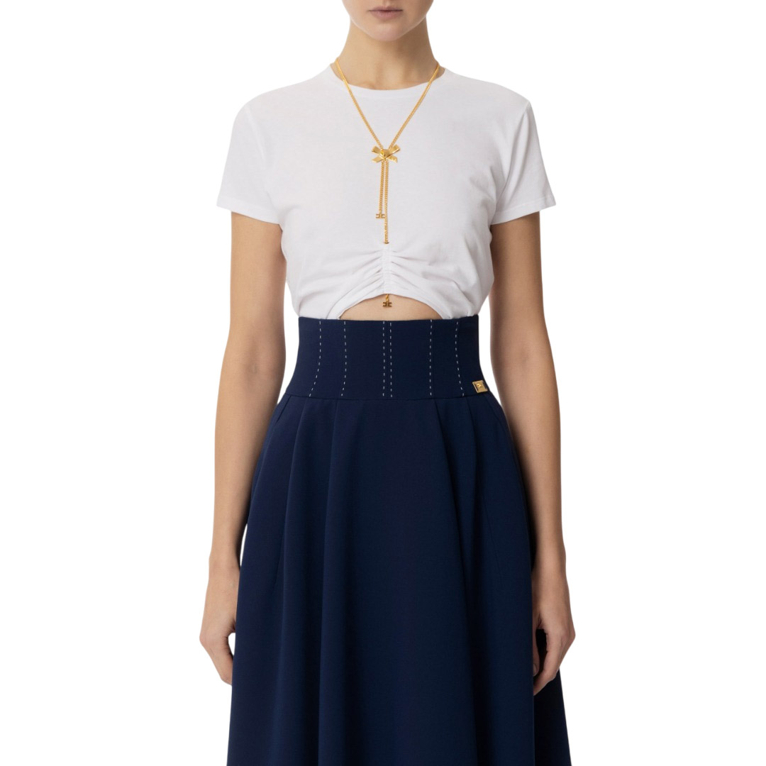 Elisabetta Franchi T-Shirt In Jersey Con Collana A Fiocco Gesso Ma00651E2 139856