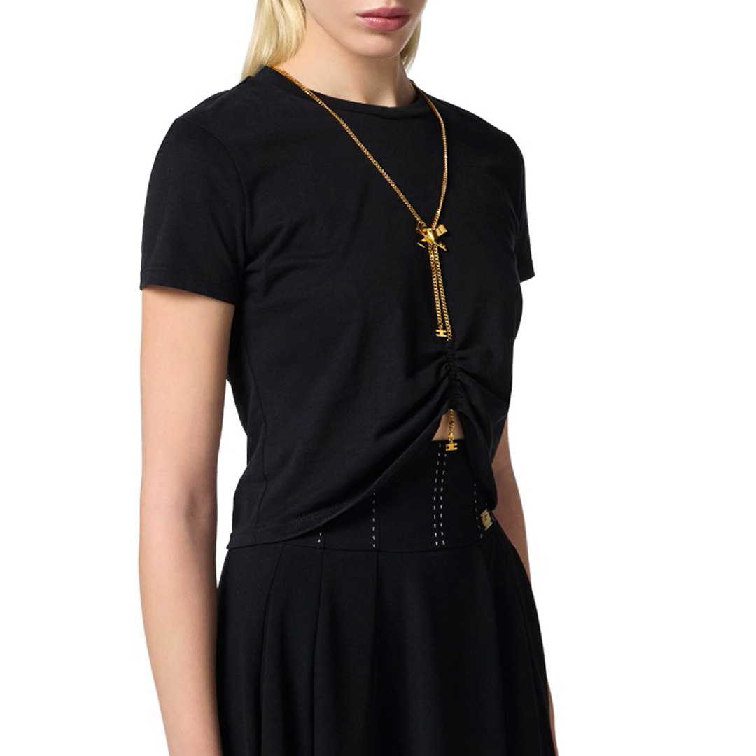 Elisabetta Franchi T-Shirt In Jersey Con Collana A Fiocco Nero Ma00651E2 139857