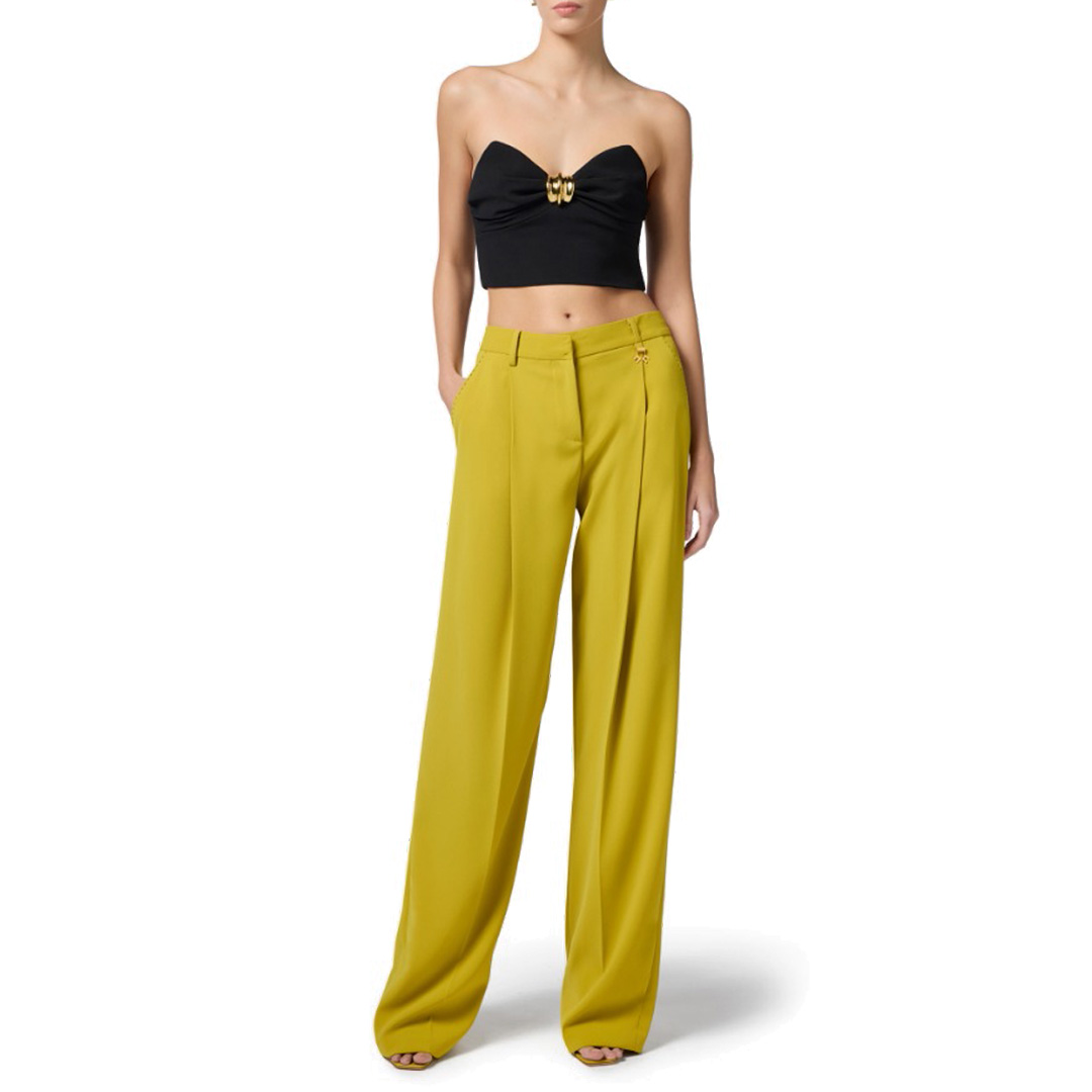 Elisabetta Franchi Top In Crepe Fluido Con Decorazione Gioiello Curry To01851E2 139561