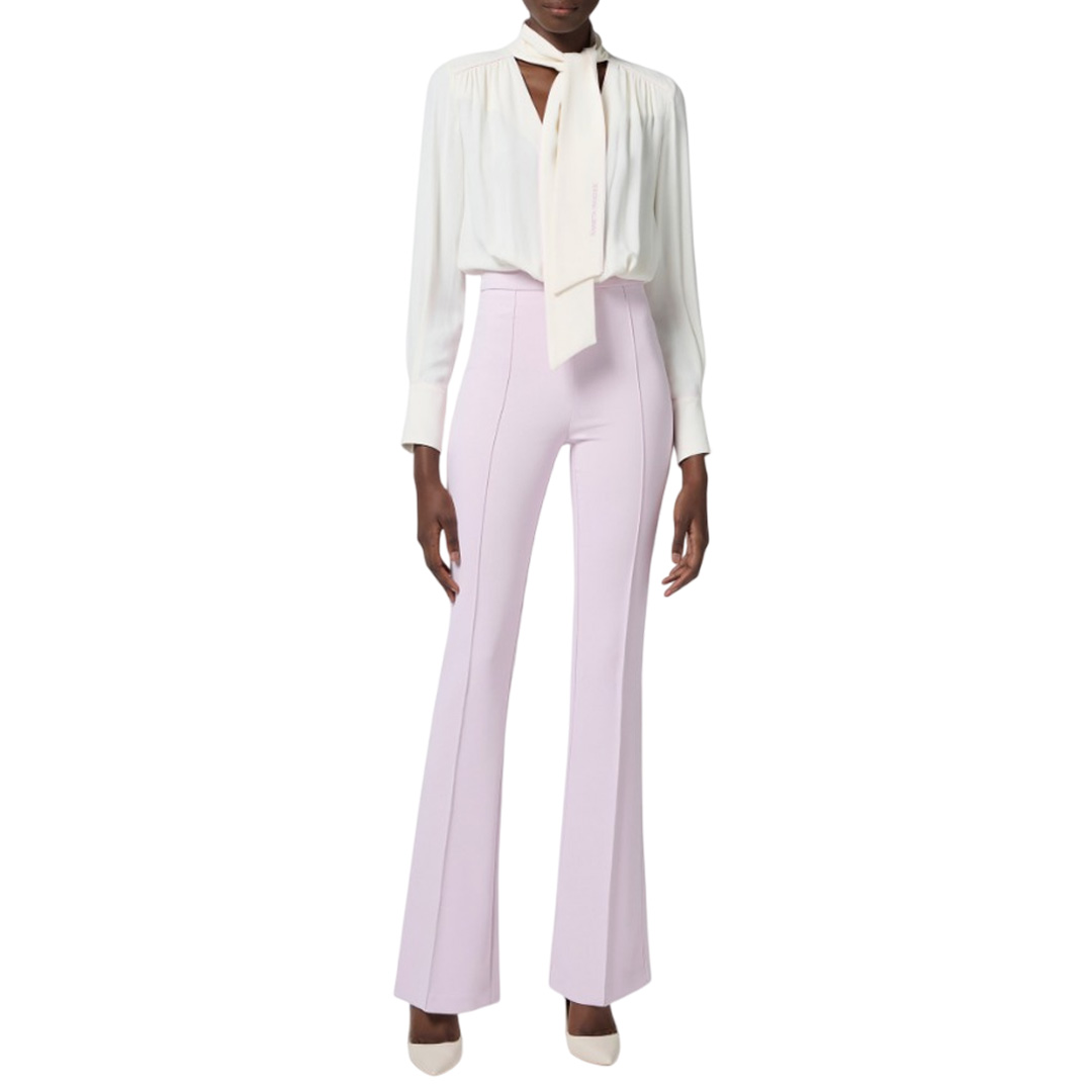 Tuta due pezzi con camicia amovibile in georgette di viscosa e pantaloni in crêpe. La camicia ha maniche lunghe e scollo a V con sciarpa logata, i pantaloni gamba svasata al fondo. Entrambe le parti sono rifinite con dettagli di piping a contrasto che aggiungono definizione. Vestibilità slim. Fodera in raso Sciarpa con logo ricamato Bottoni in metallo dorato con logo