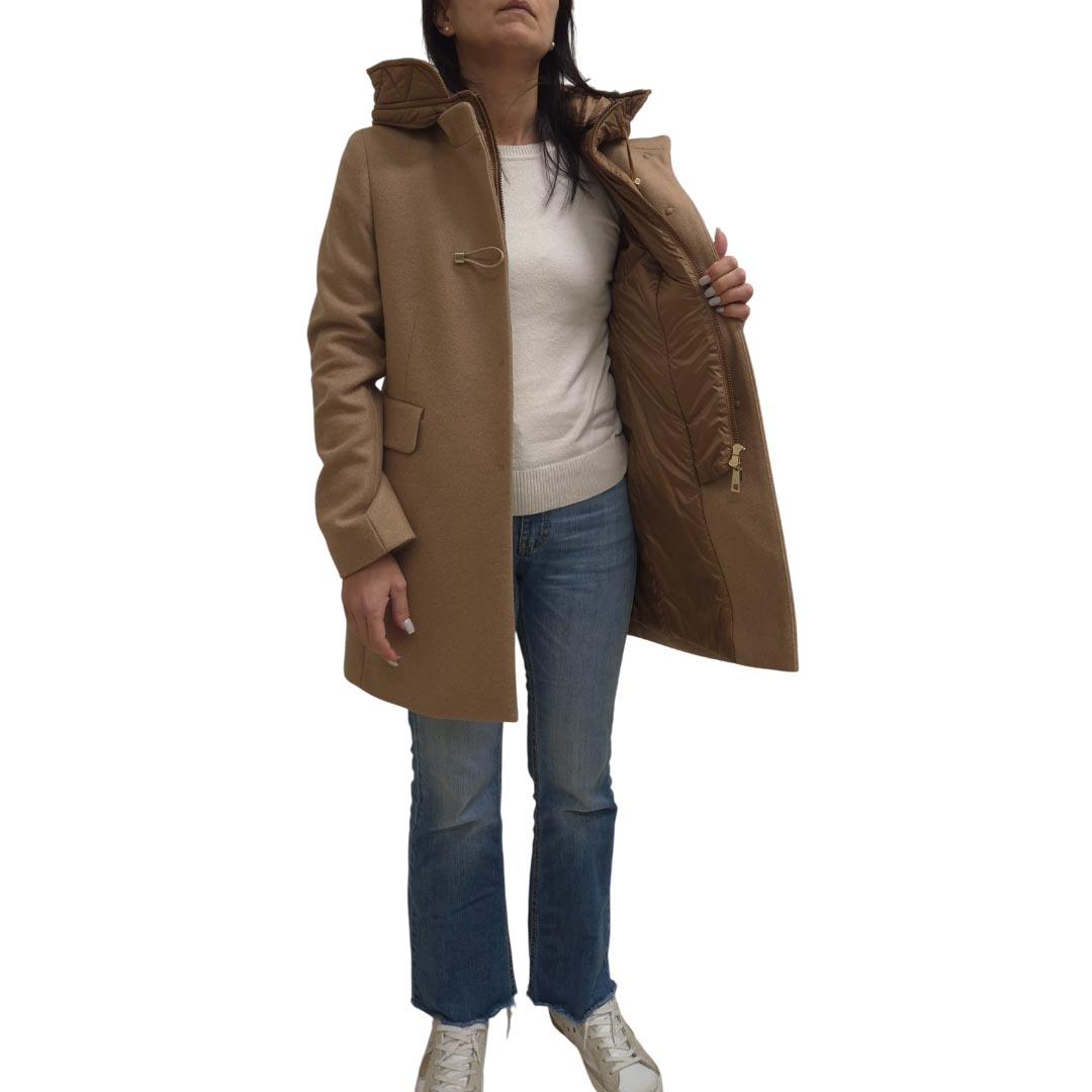 Ispirato al classico montgomery, Toggle Coat è il double front dal tocco urbano e femminile caratterizzato dalla chiusura ad alamaro. In morbido panno mélange misto lana, con pettorina e cappuccio imbottiti in ovatta tecnica, è dotato di una chiusura con zip, automatici nascosti e alamaro Fay. È caratterizzato da un'etichetta interna con il nome del capo. Regular fit