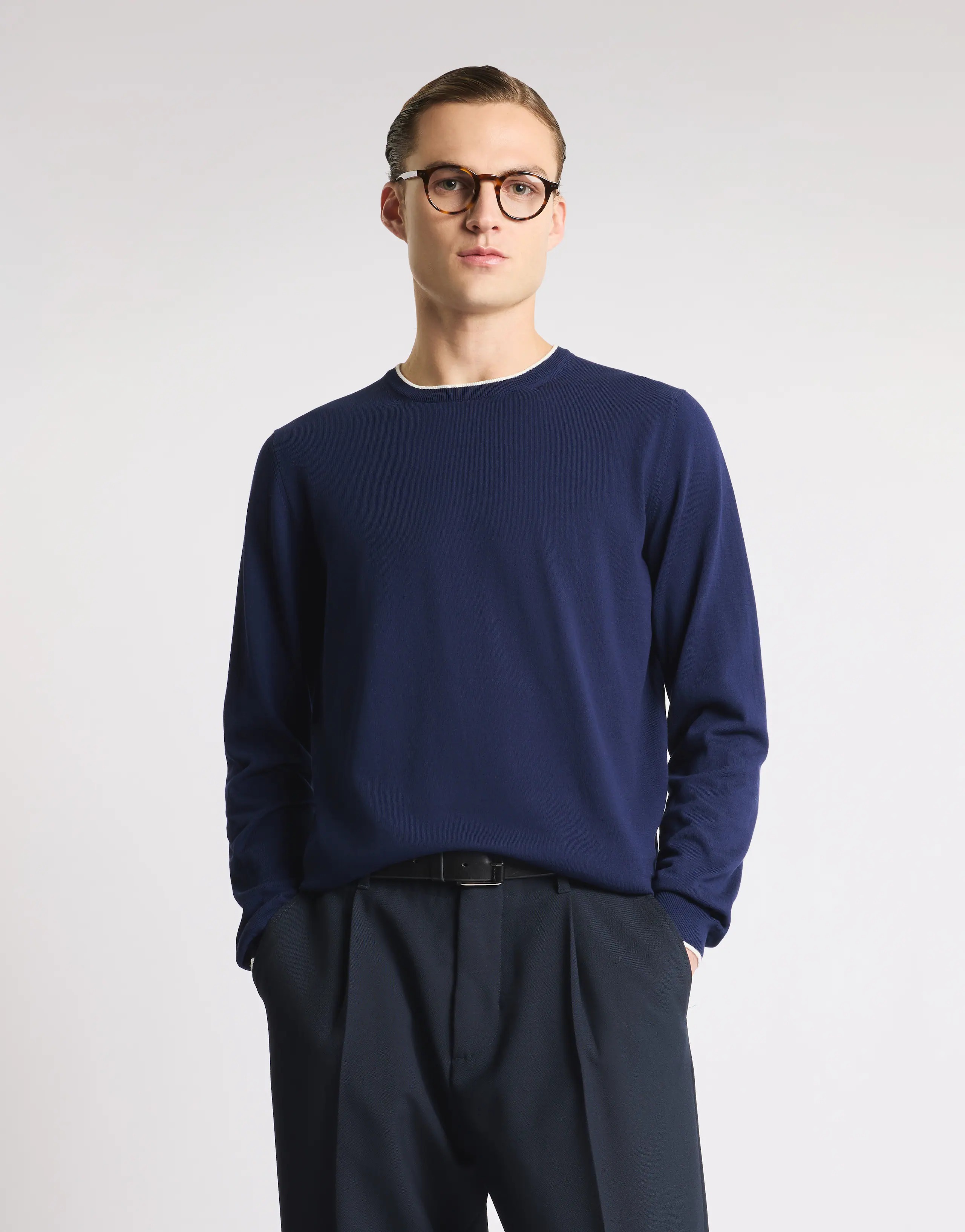 Maglia girocollo in maglia rasata di cotone, con colletto e profili dei polsi a contrasto. Impreziosita dal logo Fay ricamato sul fondo, è un evergreen casual dal gusto sobrio e raffinato. Prodotto in Italia Vestibilità: regolare