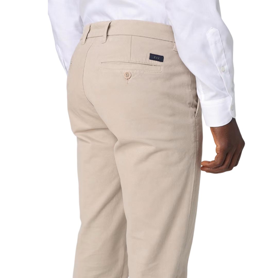 Pantaloni realizzati in gabardine di cotone tinto in capo, con etichetta personalizzata Fay sul retro e fondo risvoltato. Caratterizzati da tasche anteriori oblique, taschino portamonete e tasche posteriori a filetto con bottone, presentano una chiusura con zip e bottone. Made in Italy Fitting: slim fit