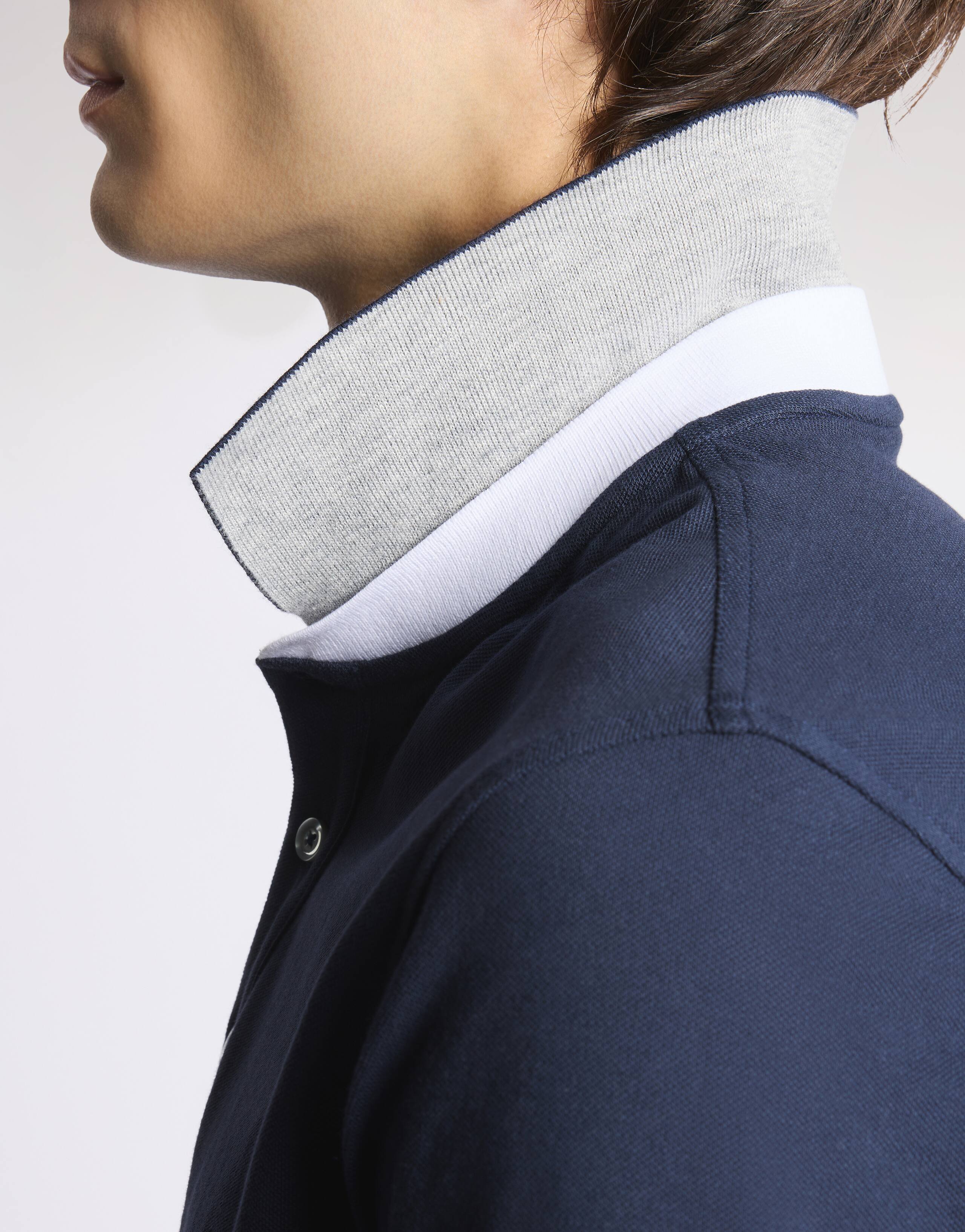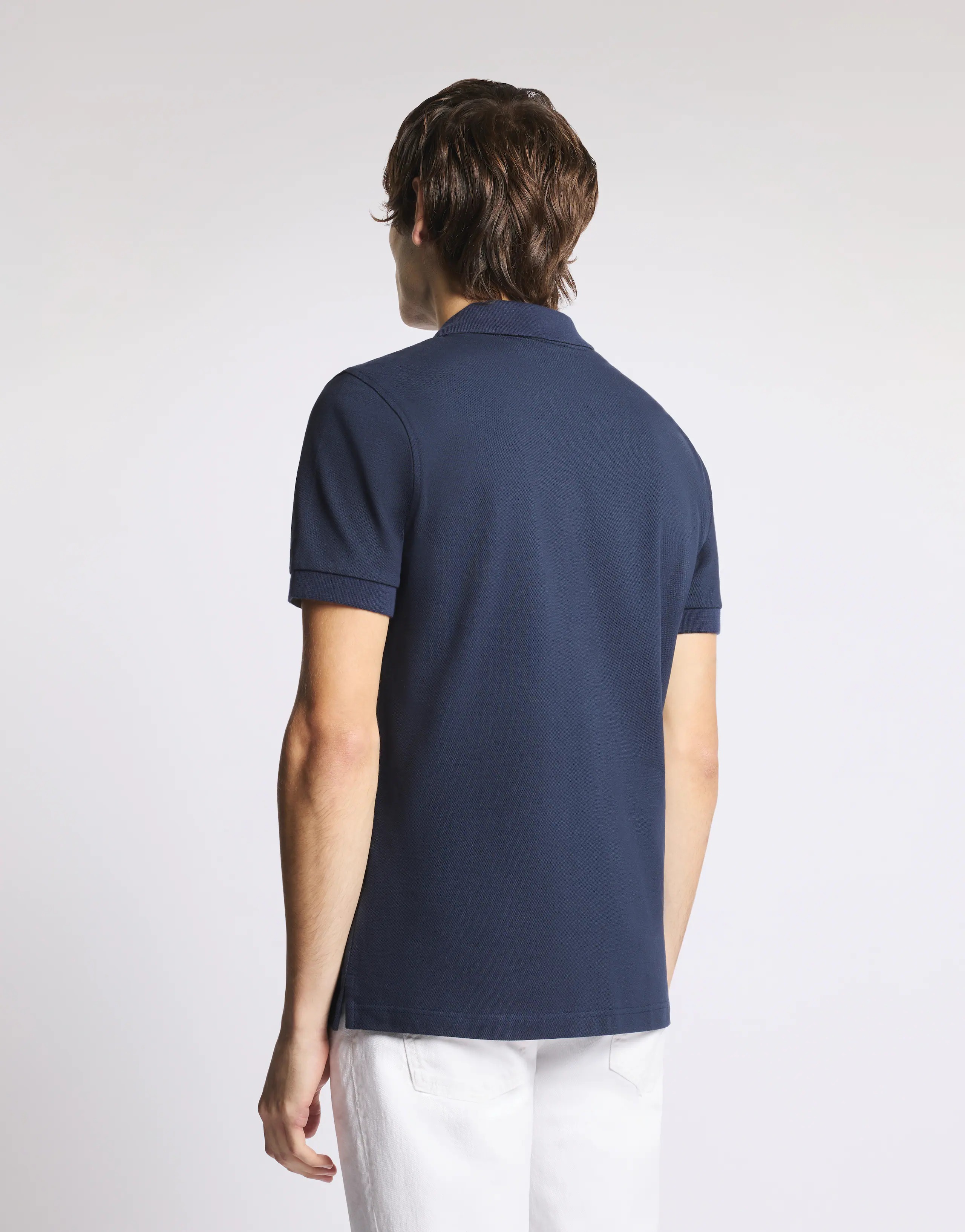 Polo regular fit a manica corta realizzata in piquet stretch, con logo Fay ricamato sul petto. Caratterizzata da un colletto a costine con costruzione double bicolore e un bordo manica con interno a contrasto, è un capo casual dal gusto sobrio e raffinato. Fitting: regular