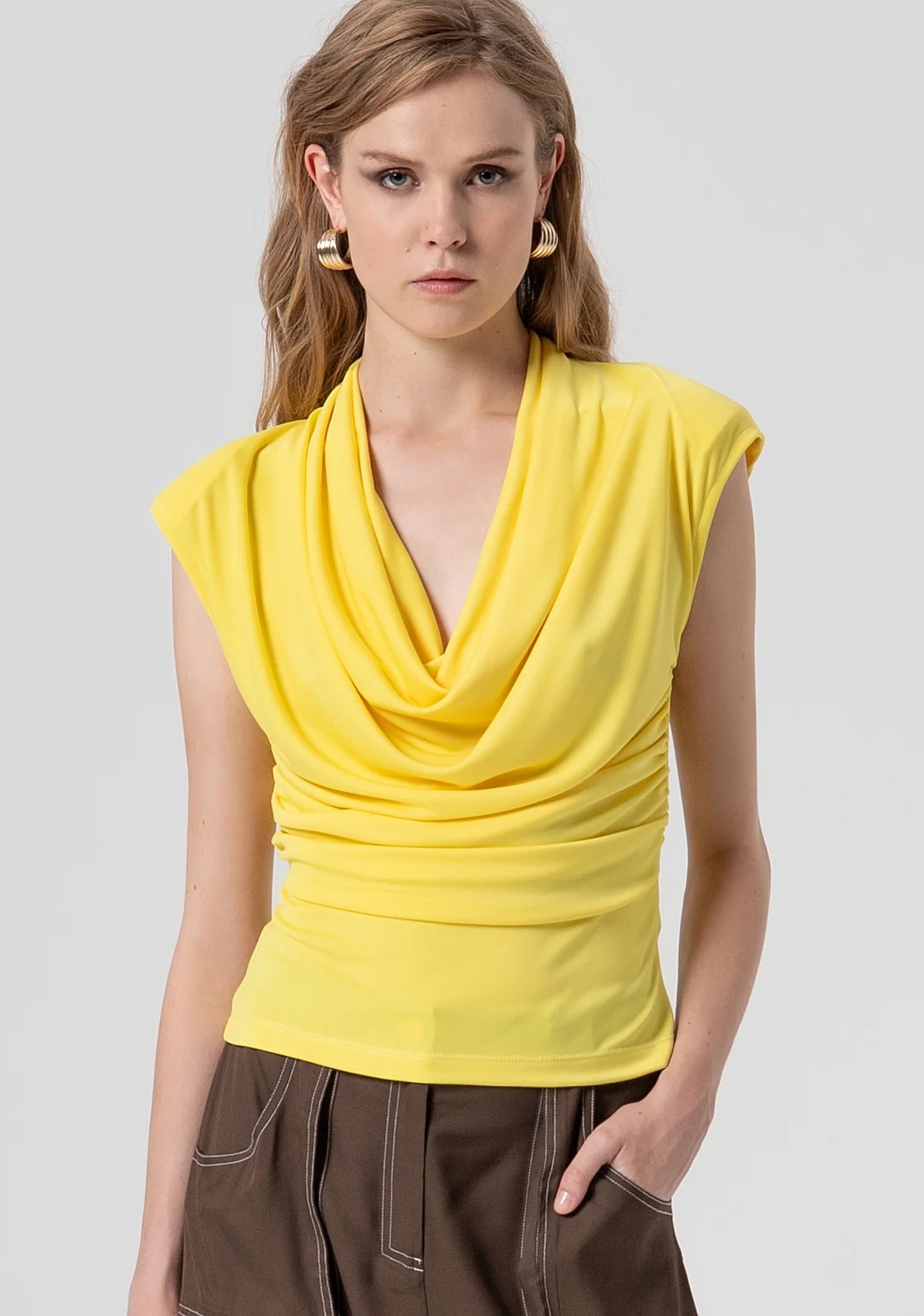 Top slim in jersey, scollo sciallato, schiena nuda, senza maniche, e con spalline.