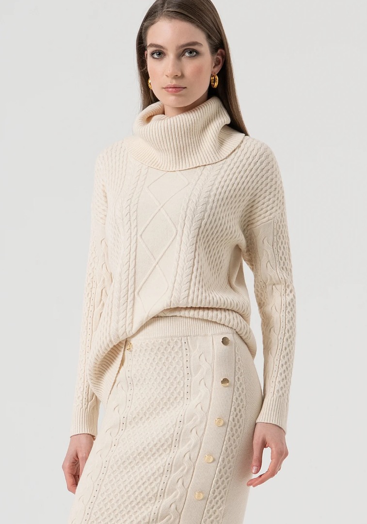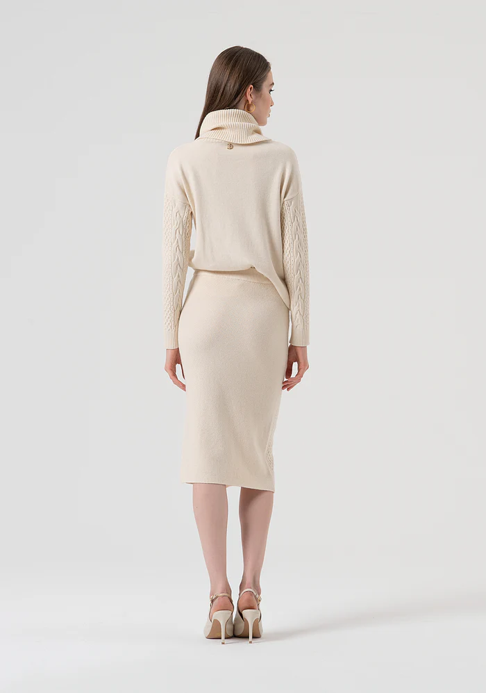 Gonna slim midi in maglia con punto treccia, vita regolare, e con spacco con bottoni sul fianco