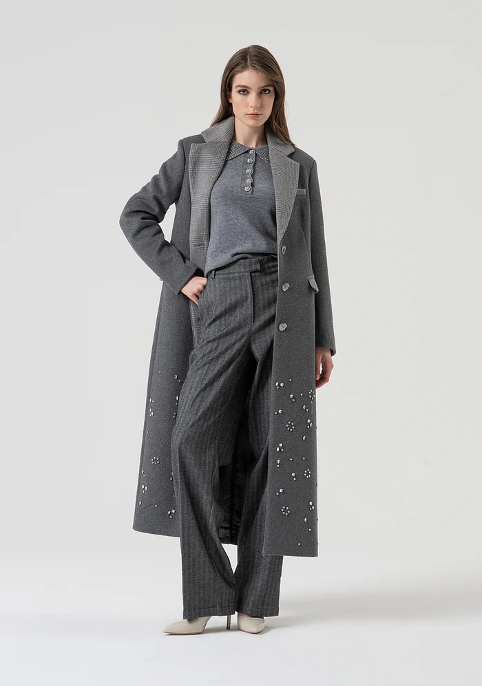 Polo regular in maglia con lana e cashmere, colletto classico con strass, bottoni centrali gioiello, e con maniche lunghe