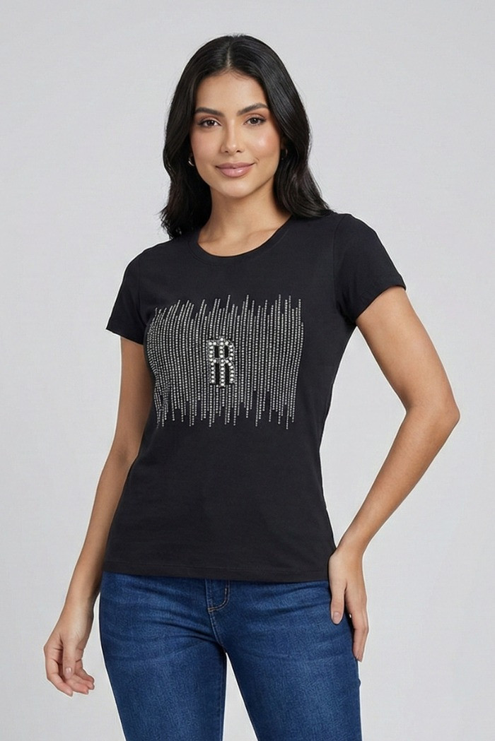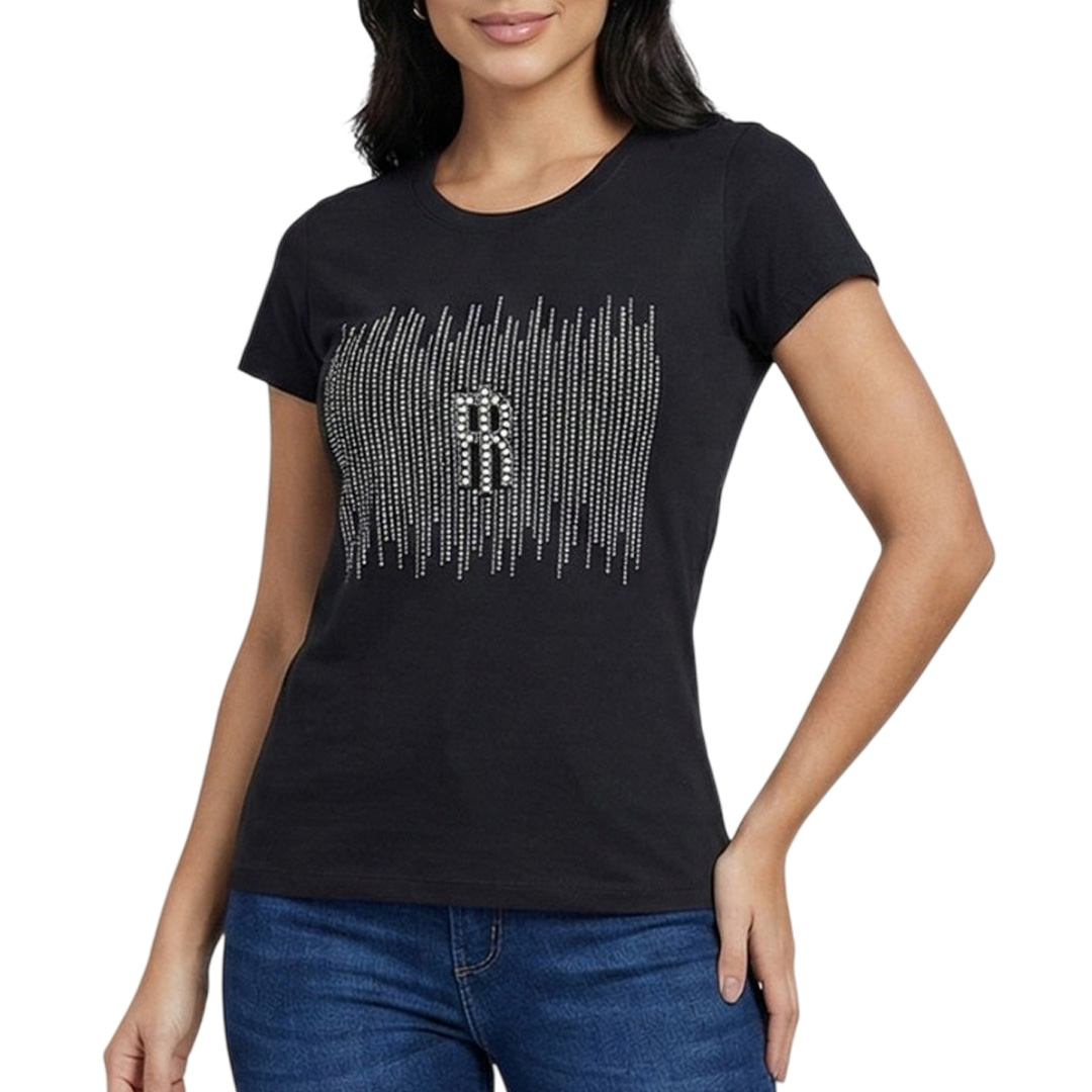 T-shirt regular in jersey, girocollo, logo con strass luminosi, e con maniche corte.