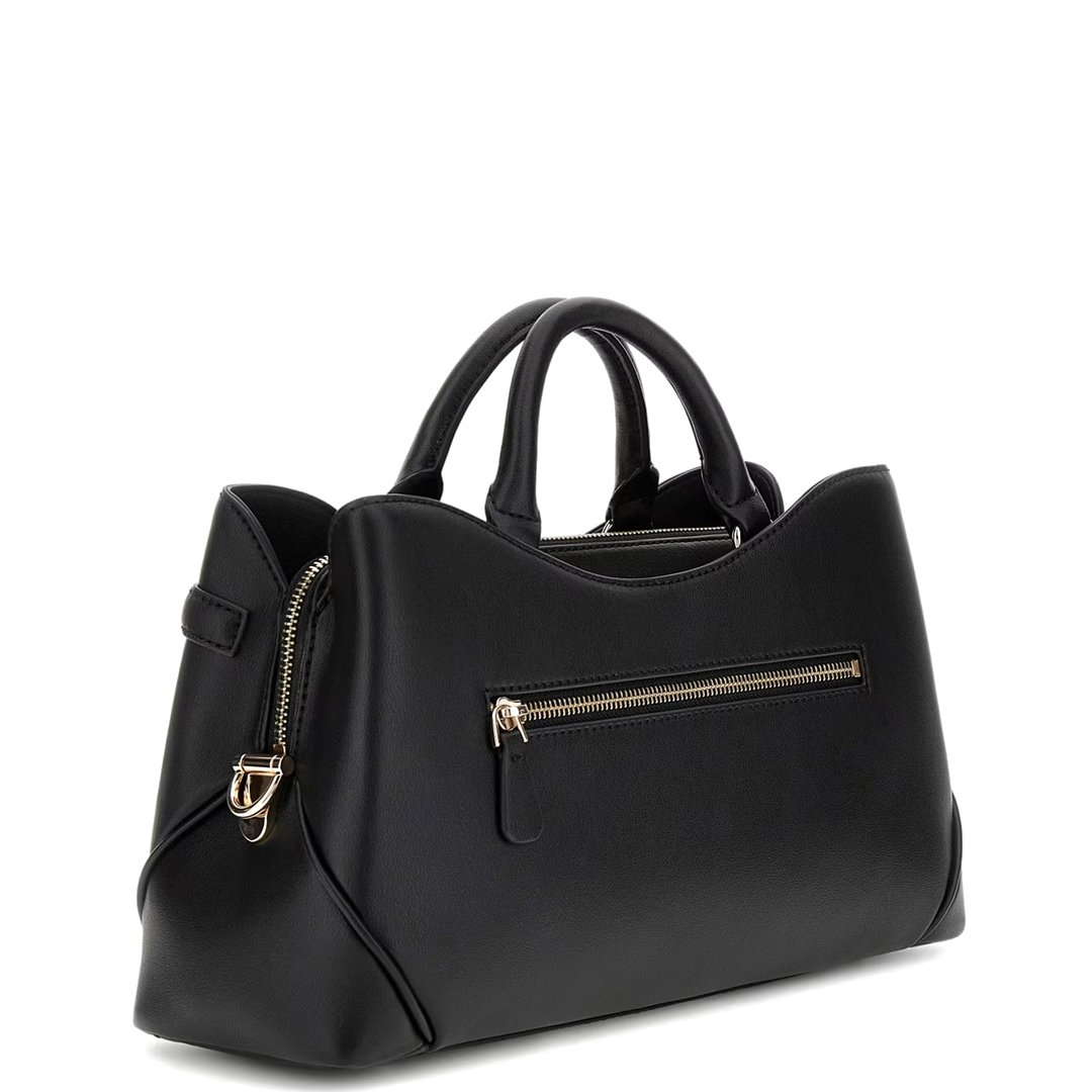 Esterno in simil pelle. Chiusura con cerniera e doppio bottone. Metalleria color oro pallido. Famiglia:Dea Fodera personalizzata con logo. Tasca interna e sul retro con cerniera lampo. Scritta logo in metallo frontale. Misure 34 x 18 x 11 cm. Due manici lunghezza ca. 35 cm. Tracolla regolabile e removibile lunghezza ca. 110/130 cm