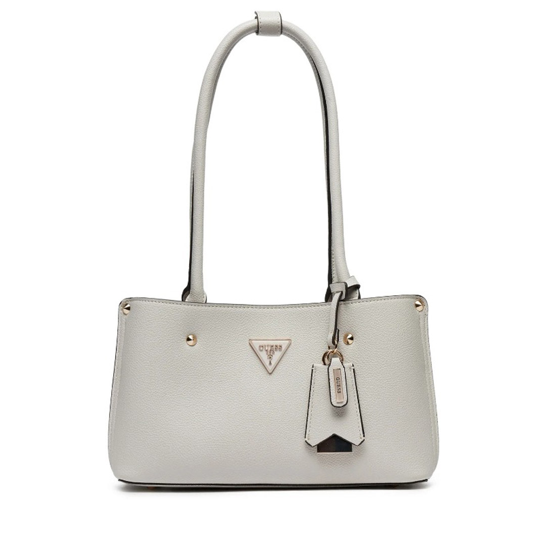Esterno in simil pelle. Chiusura con cerniera lampo. Metalleria color oro pallido. Famiglia:Meridian. Dettaglio borchie. Charm logato removibile alla base del manico. Fodera personalizzata con logo. Triangolo logo in metallo frontale. Misure 27x17x9 cm. Due manici lunghezza ca. 45 cm