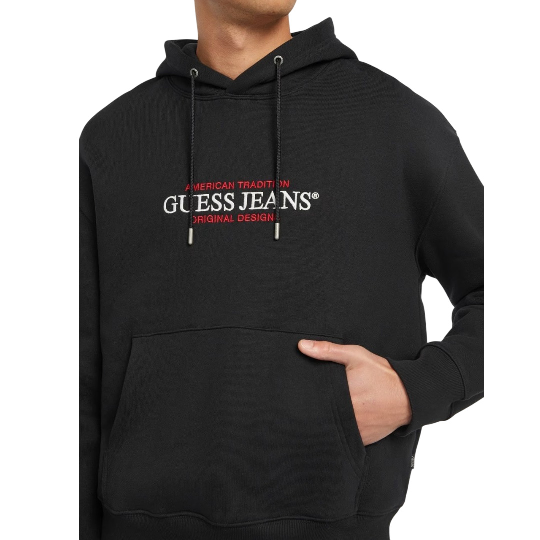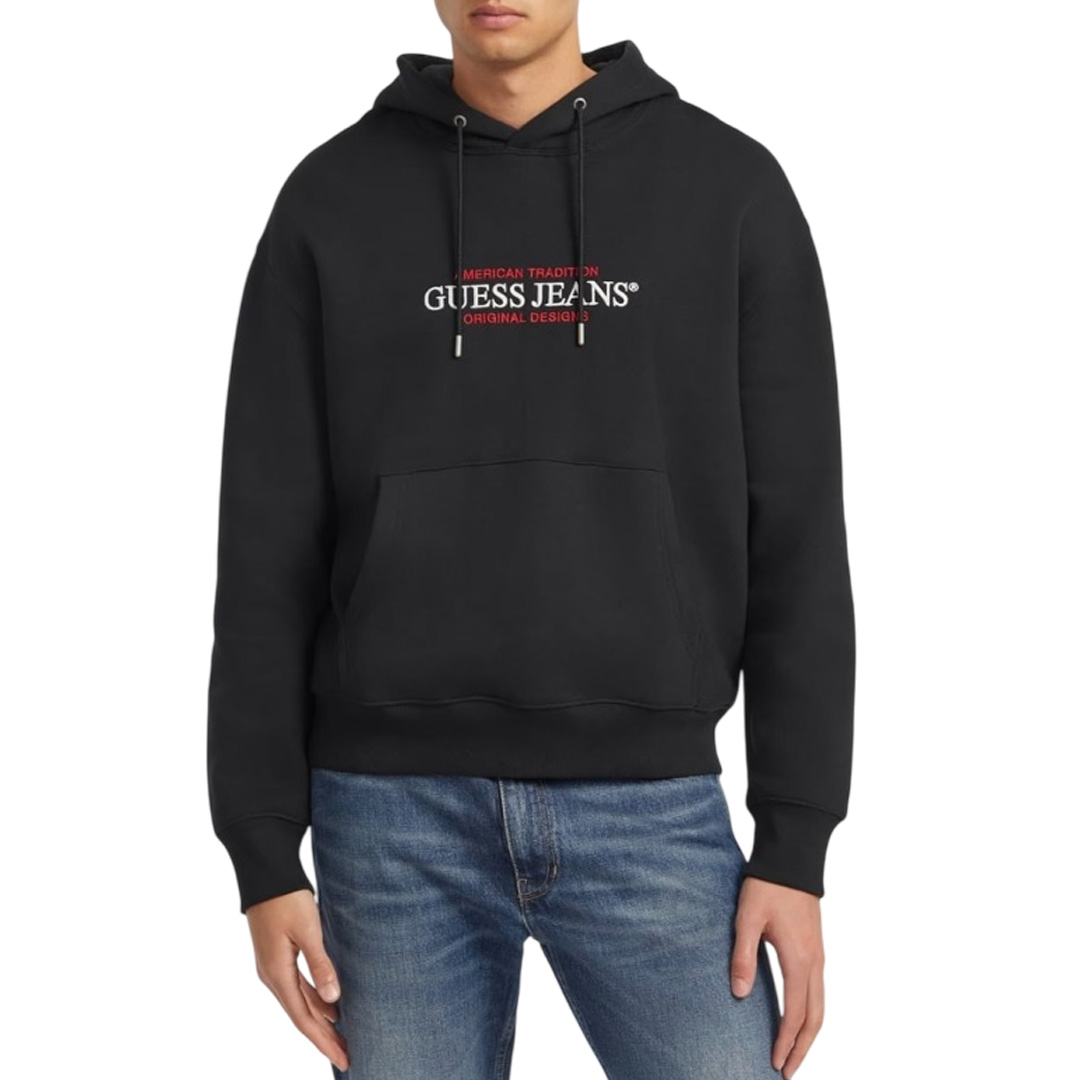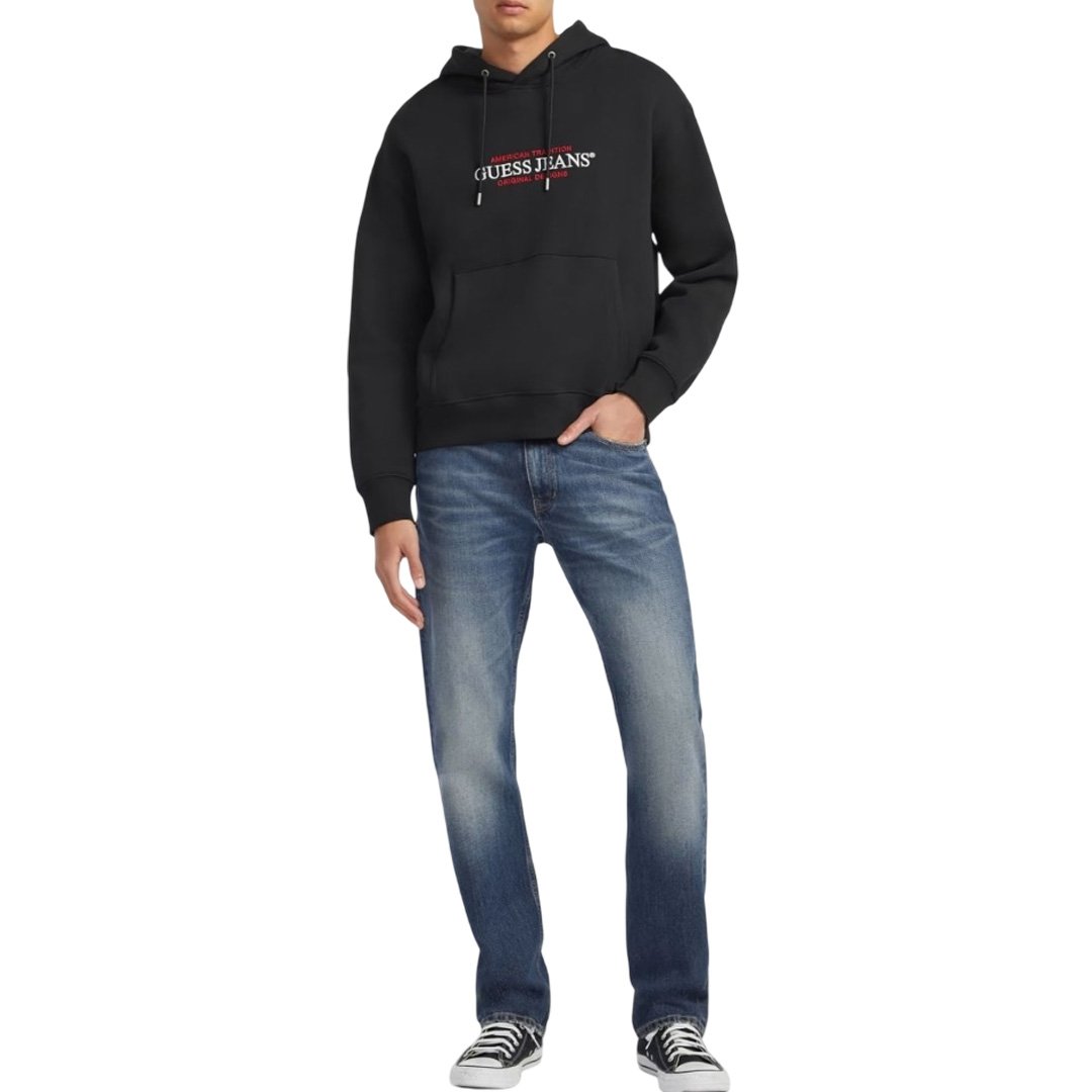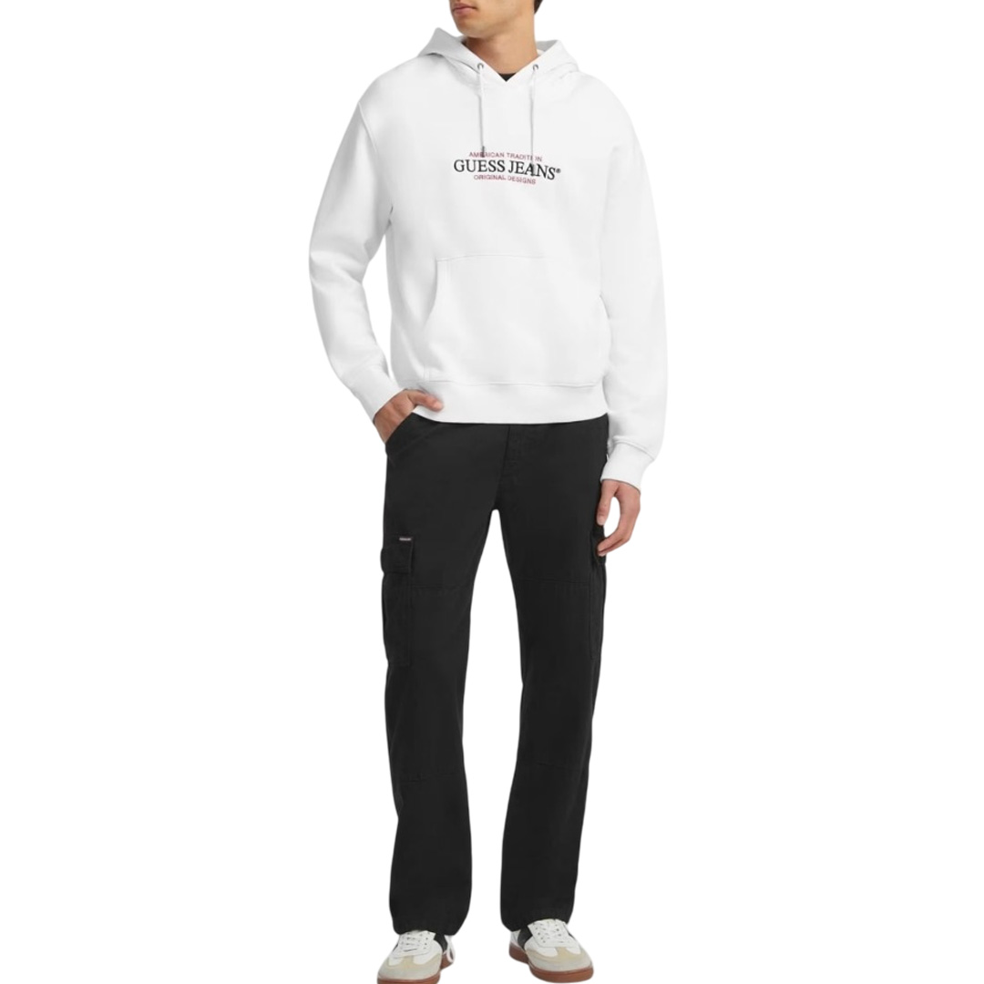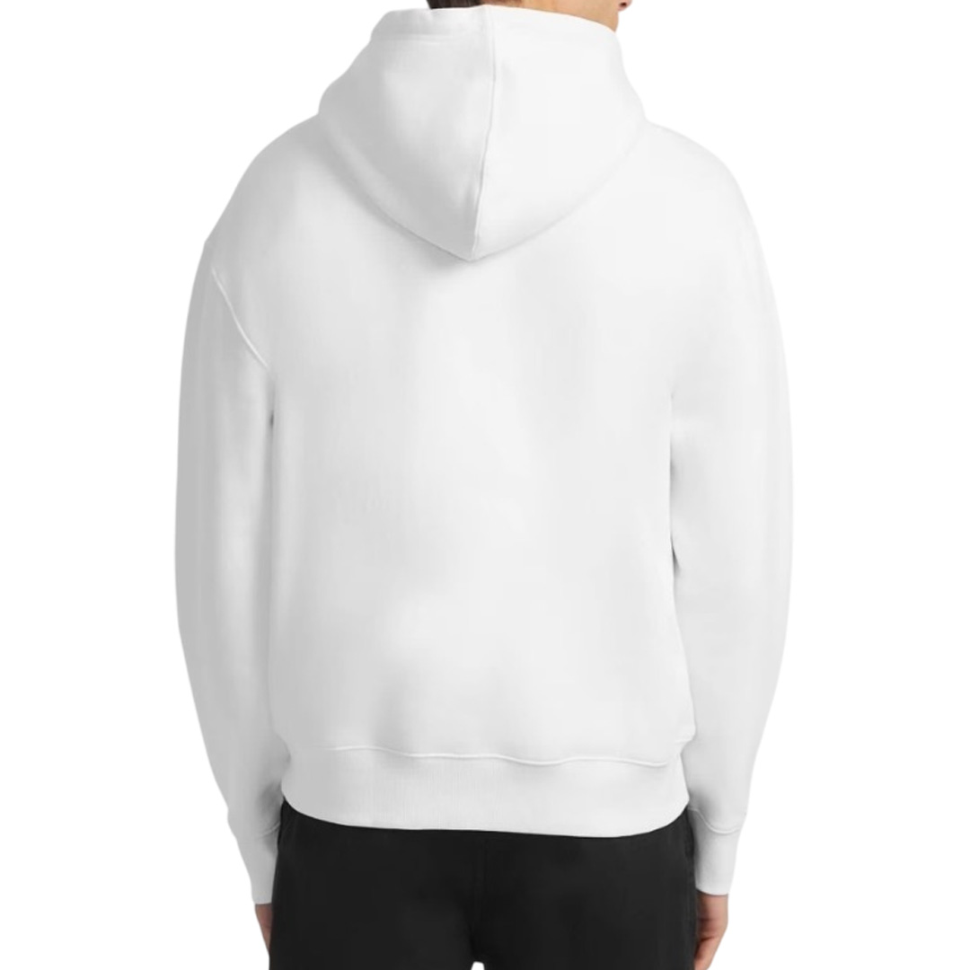 Felpa girocollo in maglia felpata. Cappuccio con coulisse. Manica lunga. Vestibilità regular. Modello slip on. Scritta con logo ricamato. Tasca a marsupio frontale. Finiture a costine.