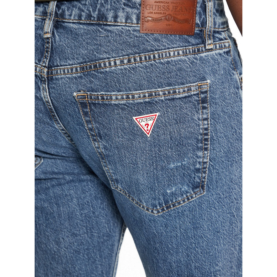Jeans dritti. Chiusura con zip e bottone. Modello a gamba dritta. Dettagli consumati. Classico modello a 5 tasche.