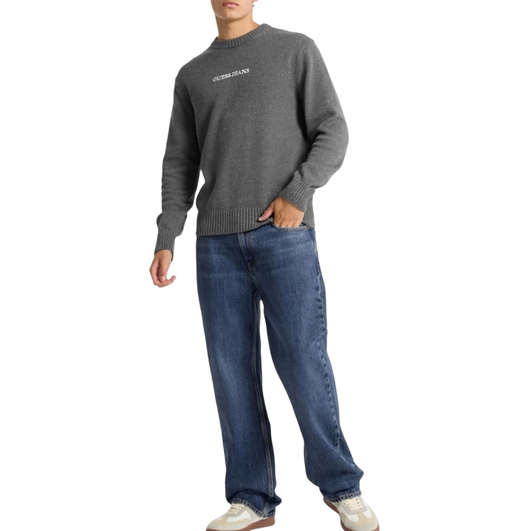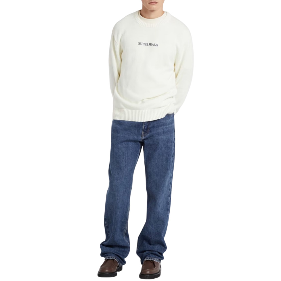 Maglione pullover in maglia di cotone. Scritta con logo ricamato. Girocollo. L’abito ha maniche lunghe. Vestibilità e lunghezza regular.