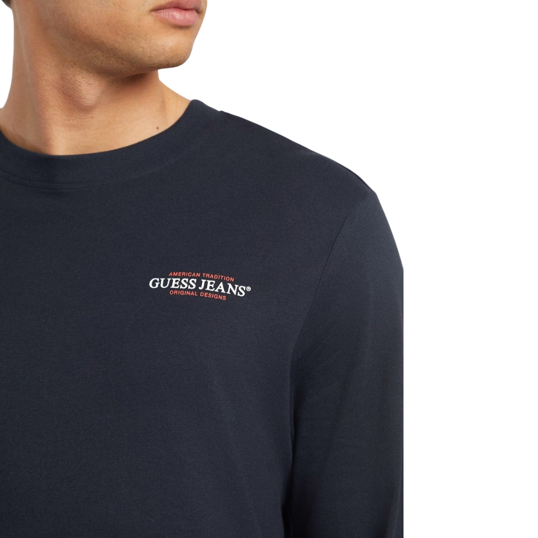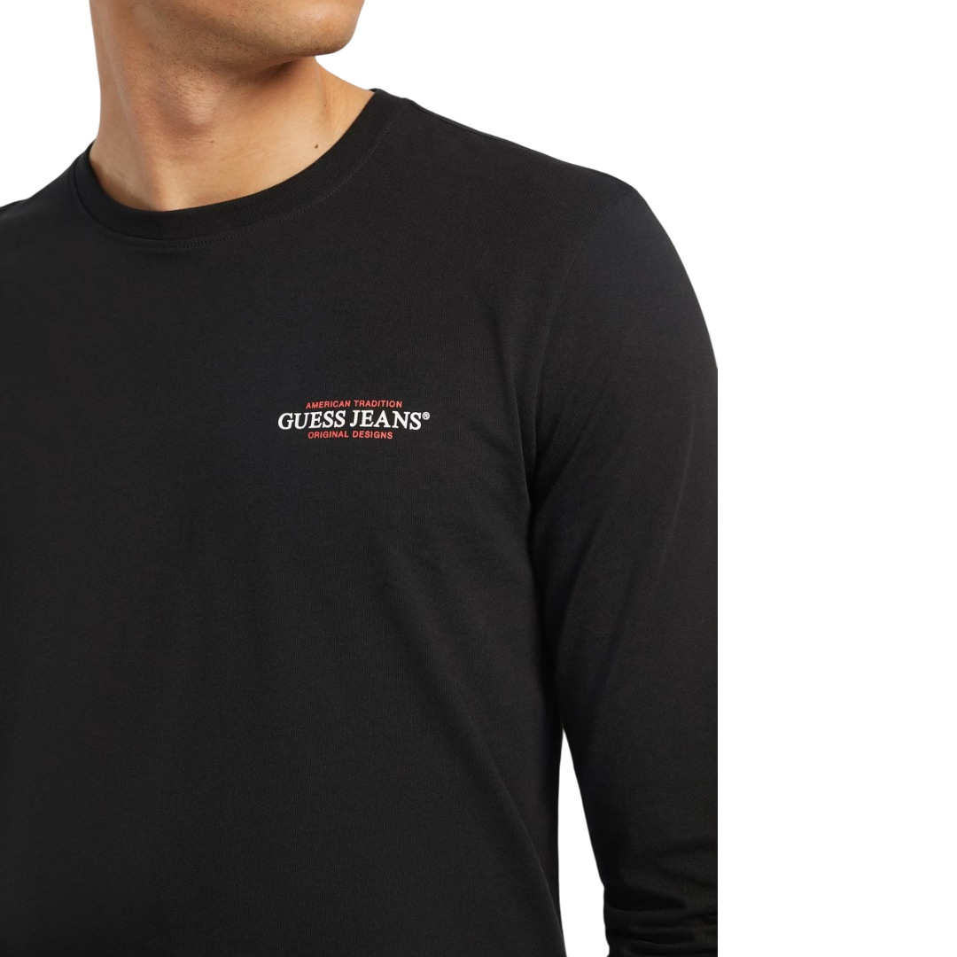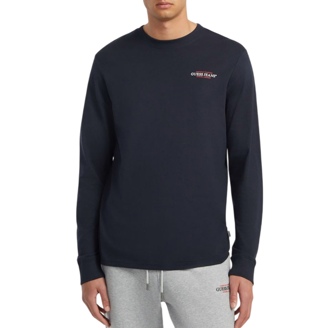 T-shirt in maglia di jersey di cotone. Girocollo. Manica lunga. Vestibilità slim. Modello slip on. Dettaglio di grafica con logo sul petto