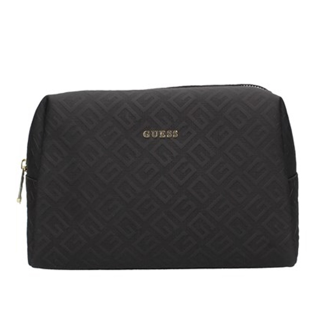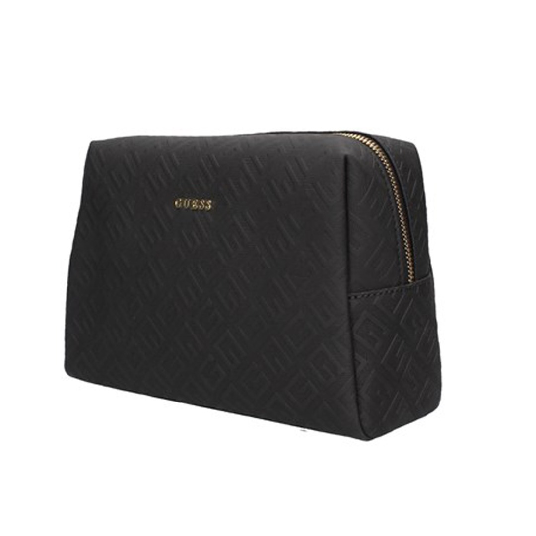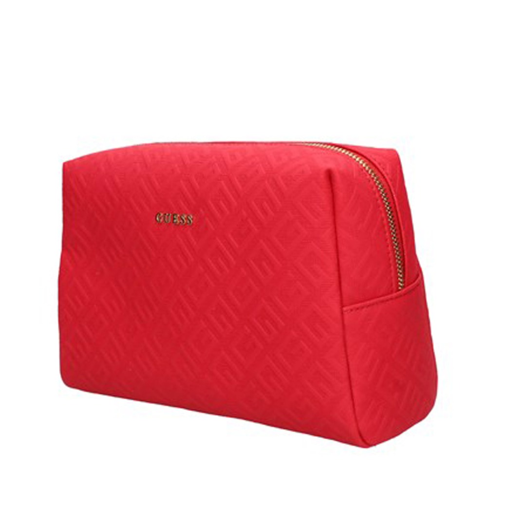 Pochette in eco-pelle firmata Guess, sarà l'accessorio utile e compatto per avere tutto in ordine, L'interno è foderato in tessuto, è presente 1 scomparto con zip. Metalleria color oro pallido. Lettering del brand Guess in metallo frontale.