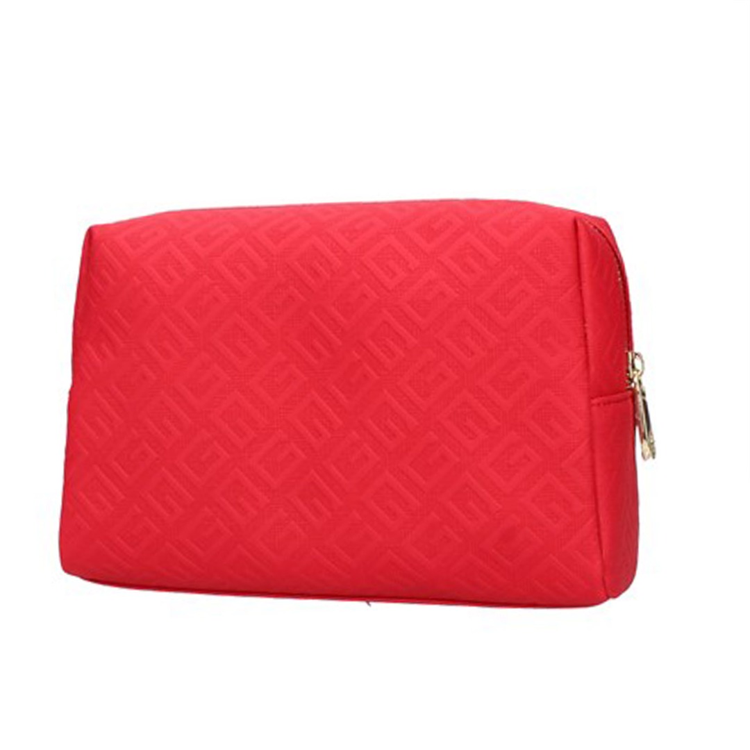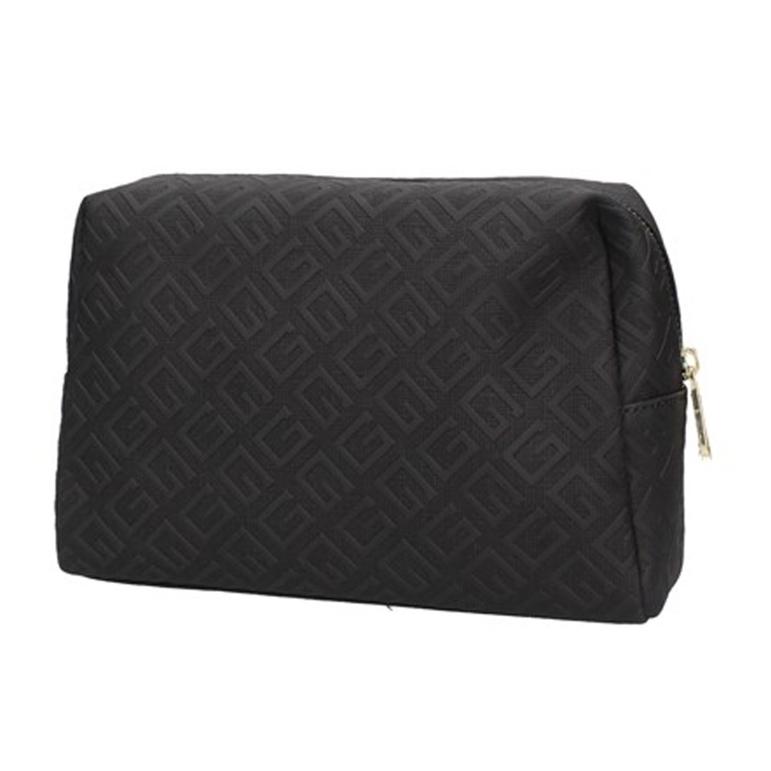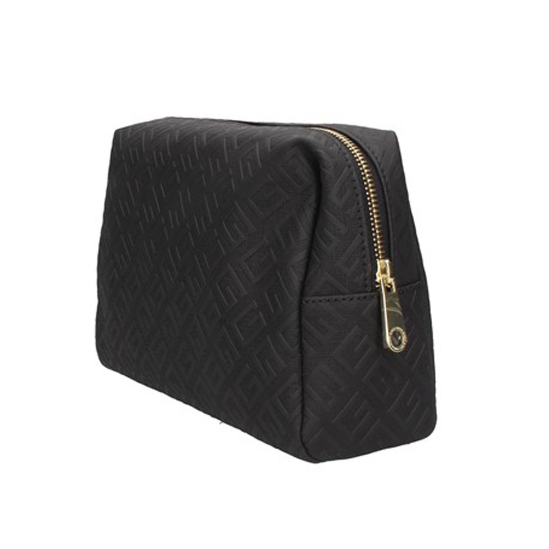 Pochette in eco-pelle firmata Guess, sarà l'accessorio utile e compatto per avere tutto in ordine, L'interno è foderato in tessuto, è presente 1 scomparto con zip. Metalleria color oro pallido. Lettering del brand Guess in metallo frontale.