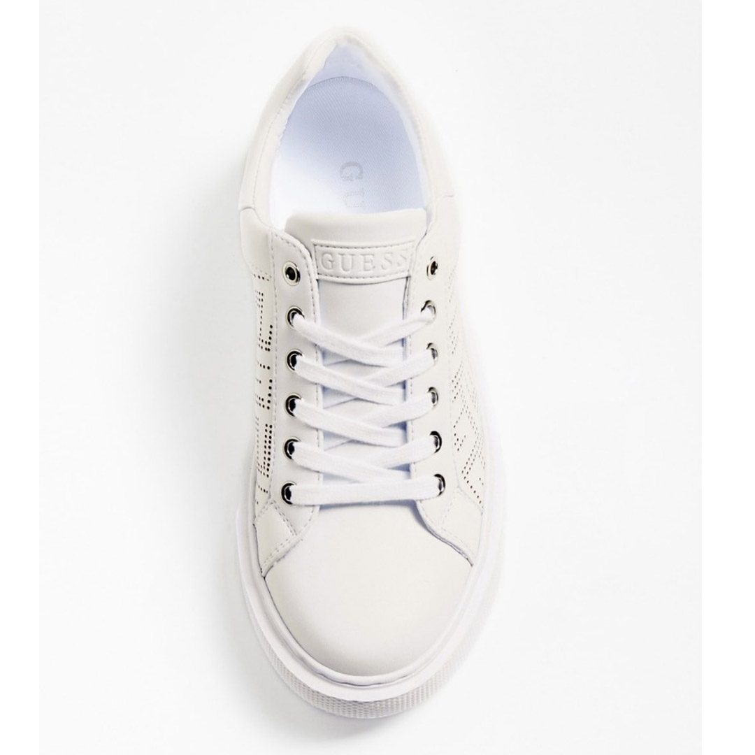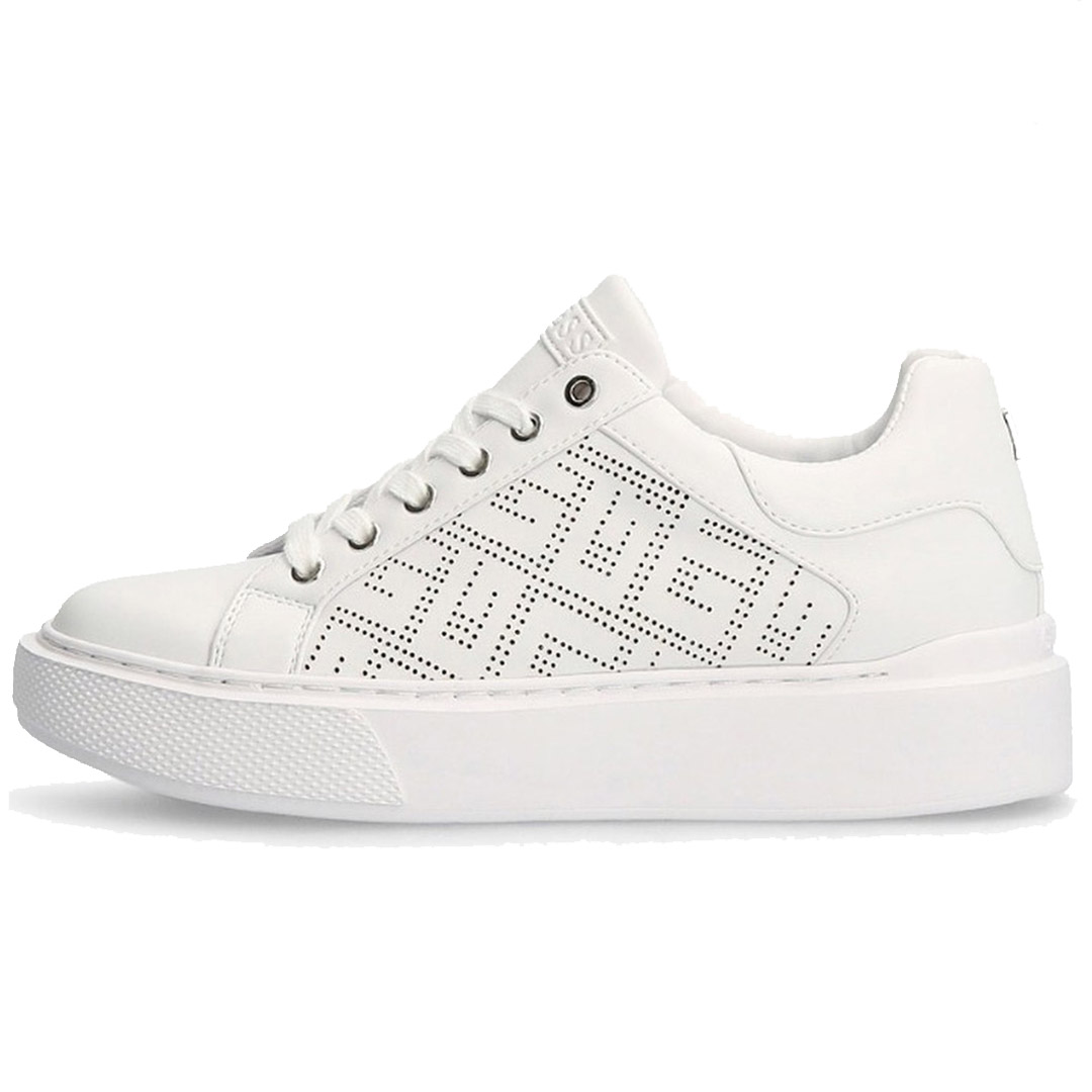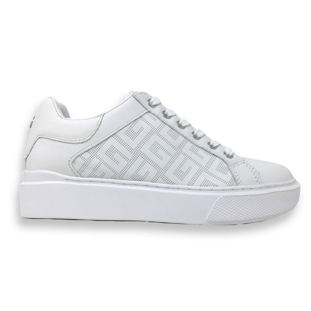 Sneaker in vera pelle. Punta tonda. Altezza para 4,5 cm. Chiusura con stringhe. Scritta logo all over traforata laterale. Sottopiede in pelle. Fodera interna in tessuto. Suola in gomma ammortizzata.