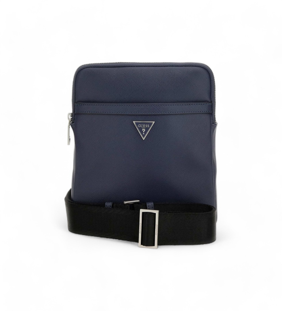 Esterno in simil pelle idrorepellente. Chiusura con cerniera lampo. Metalleria color argento. Lavorazione saffiano. Contiene dispositivi fino a 6,8''. Pensato per tenere in modo sicuro i dispositivi e l'essenziale. Leggero, resistente, piacevole al tatto. Triangolo logo in metallo frontale. Misure 19x23x2 cm. Tracolla in nylon ad alta densità. Tracolla regolabile lunghezza ca. 110/130 cm.