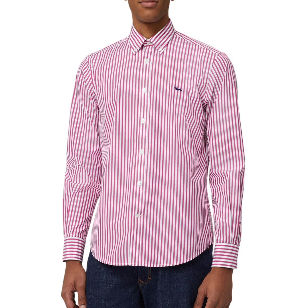 Realizzata in fresco e traspirante cotone, questa camicia da uomo firmata Harmont & Blaine si caratterizza per una fantasia a righe verticali all over e per l'iconico bassotto ricamato sul petto. Il capo, realizzato in una confortevole vestibilità regular, è completato da un pratico collo con bottoncini e da un raffinato carré con sfondo piega sul retro