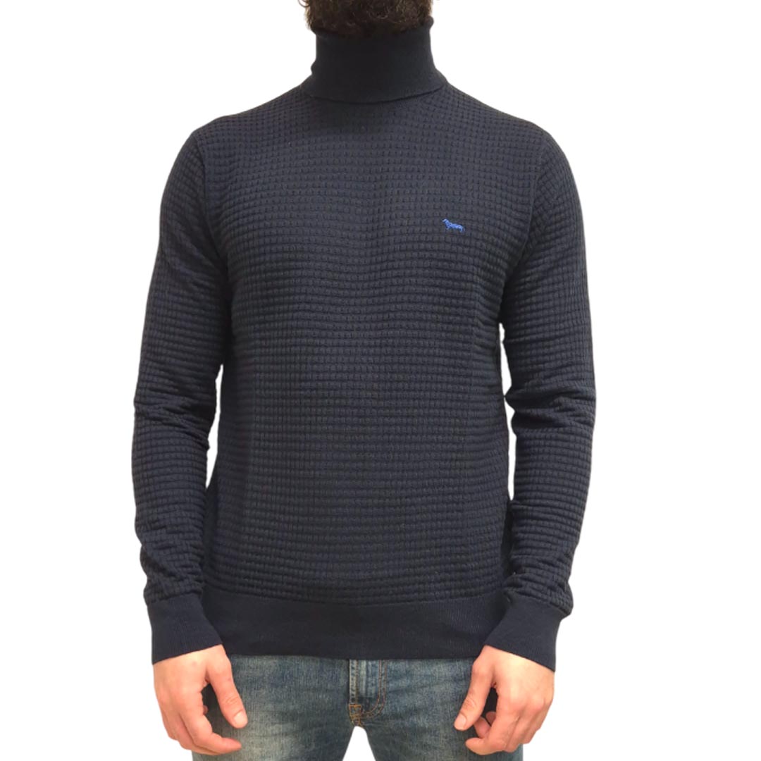 Harmont & Blaine firma un dolcevita da uomo realizzato in un morbido e confortevole mix di cotone e lana ideale per completare i vostri outfit casual della stagione fredda. Il capo è caratterizzato infatti da un versatile design tinta unita rifinito da una lavorazione a costine su collo alto, polsini e fondo, ma non rinuncia al tocco di brio tipico del brand: una raffinata lavorazione a quadretti in 3D all over. A completare questo modello dalla comoda vestibilità regular troviamo l’immancabile bassotto Blaine ricamato a contrasto sul petto.