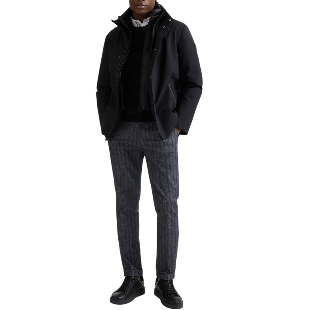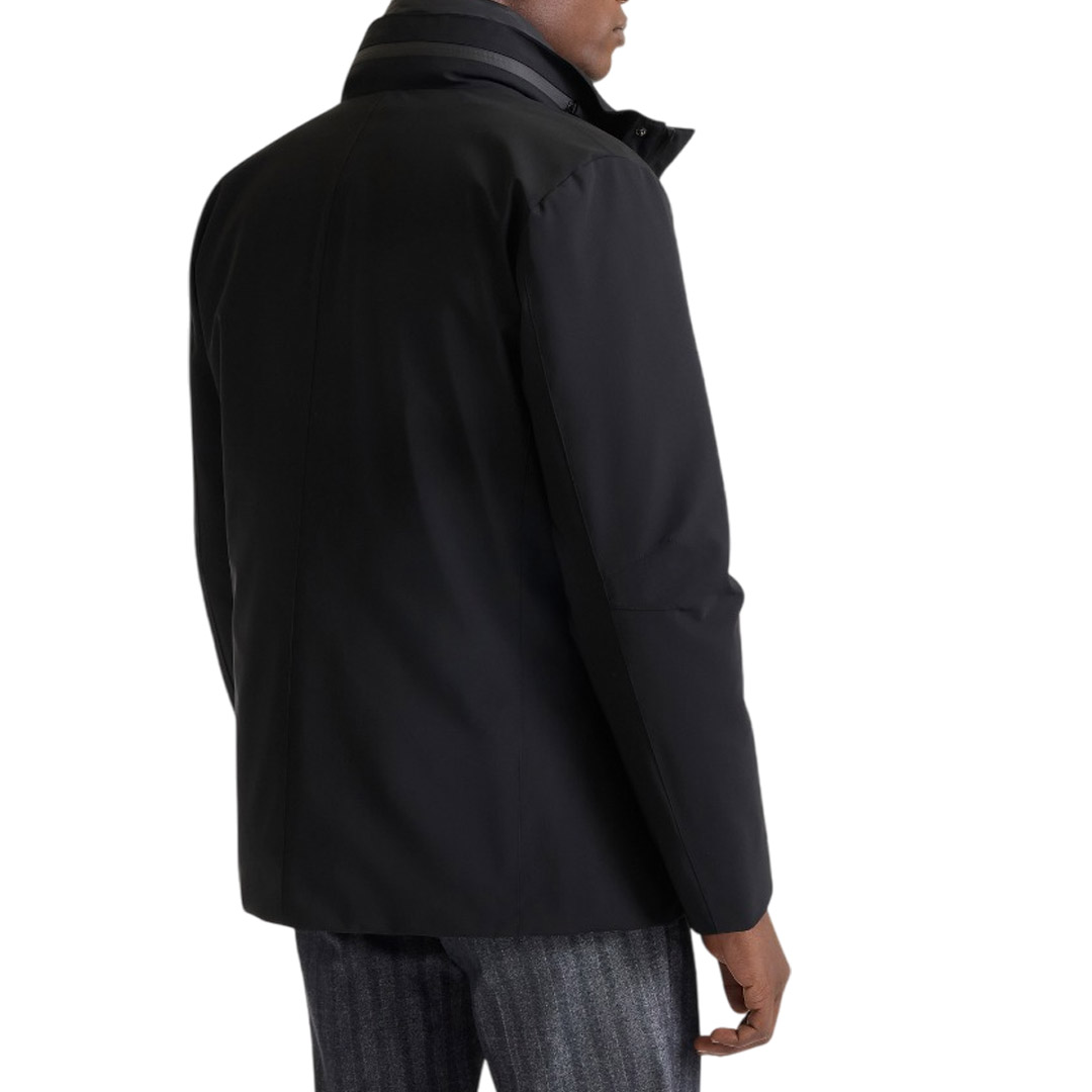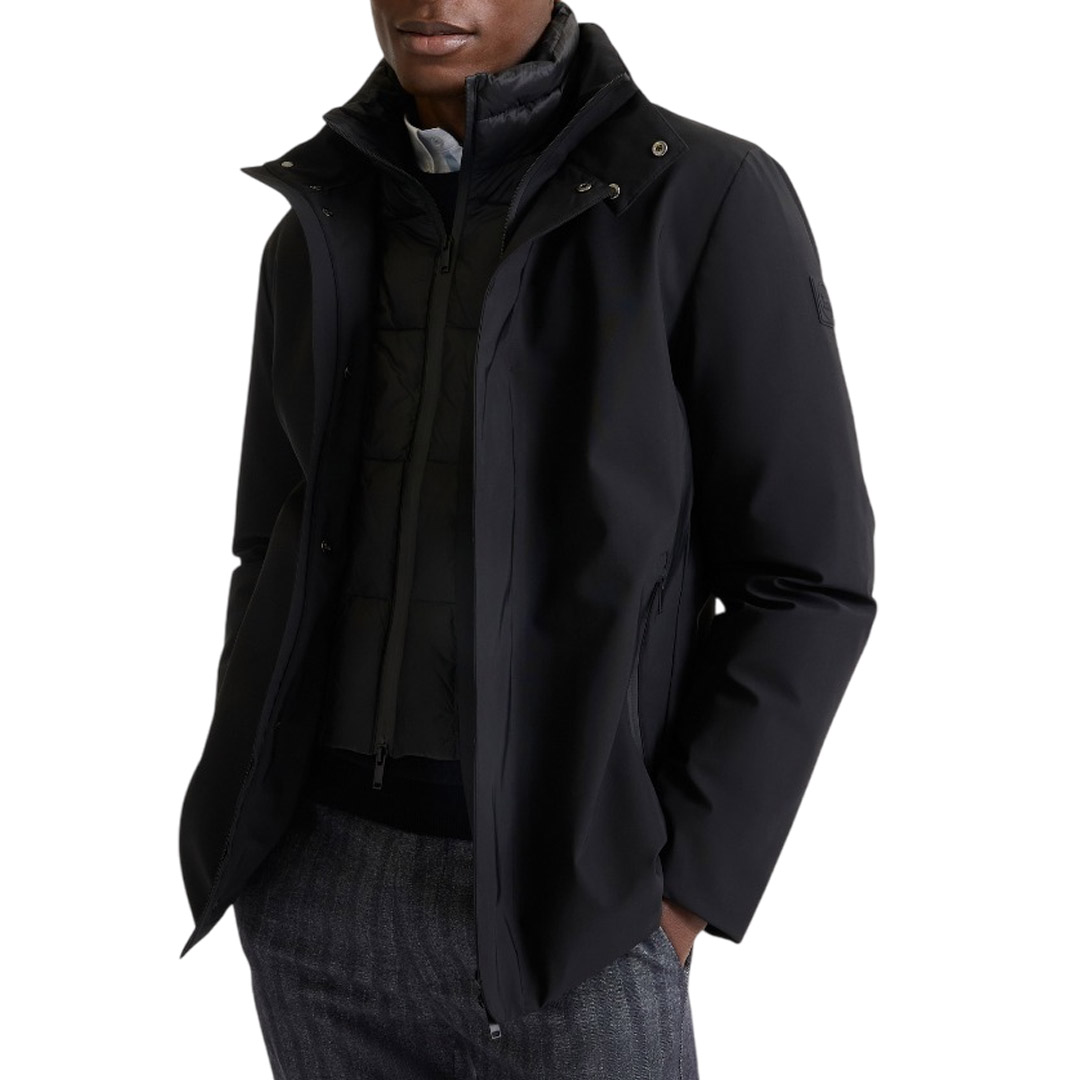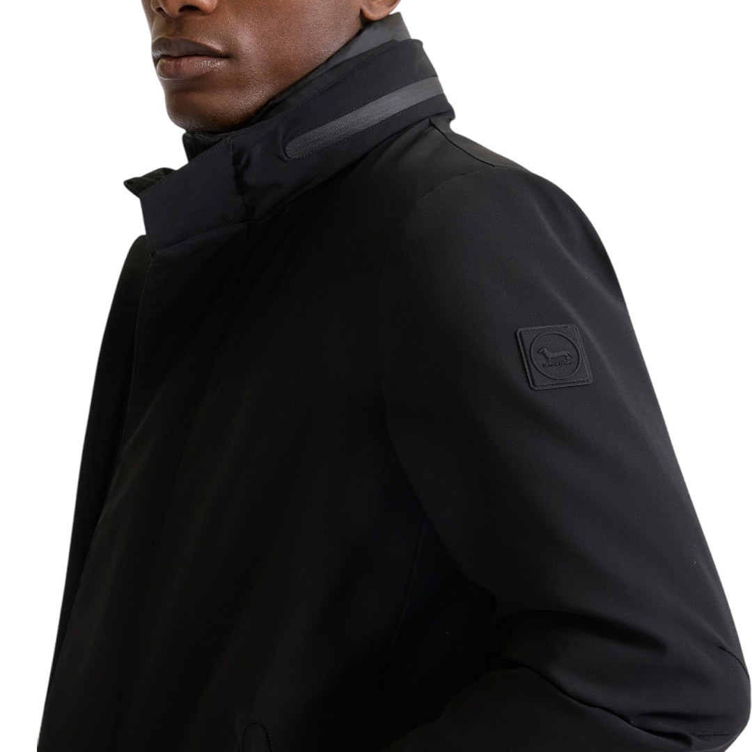 Realizzata in un tessuto tecnico stretch adatto anche ad affrontare i primi freddi della stagione, la field jacket da uomo firmata Harmont & Blaine presenta un design essenziale e versatile. Il modello è dotato di un inserto interno imbottito in piuma e trapuntato con collo in piedi e tasca con zip, mentre l'esterno è caratterizzato da due tasche laterali con zip e una raffinata chiusura nascosta con zip e bottoni. Rifinisce il design una patch in tono sulla manica su cui figura il bassotto Blaine, immancabile mascotte del brand.