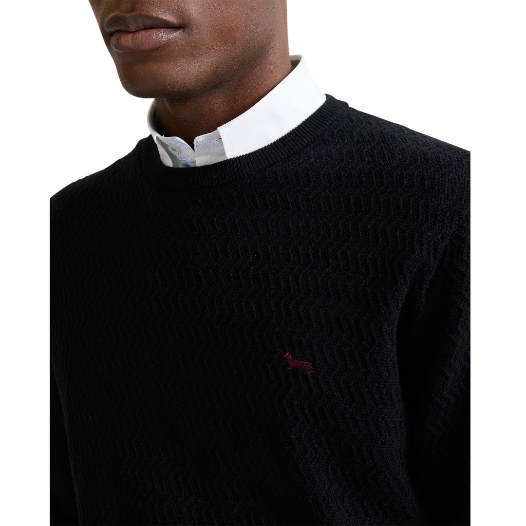 Essenziale e versatile, questo pullover girocollo da uomo è realizzato in maglia fine con lavorazione micro-strutturata che dona al capo un effetto elegante e tridimensionale. Il design pulito è rifinito da bordi a costine su colletto, fondo e polsi, mentre il logo del bassotto ricamato sul petto aggiunge un tocco iconico e discreto. Perfetto da indossare con camicia o T-shirt, è un alleato ideale per i look casual e smart della stagione.