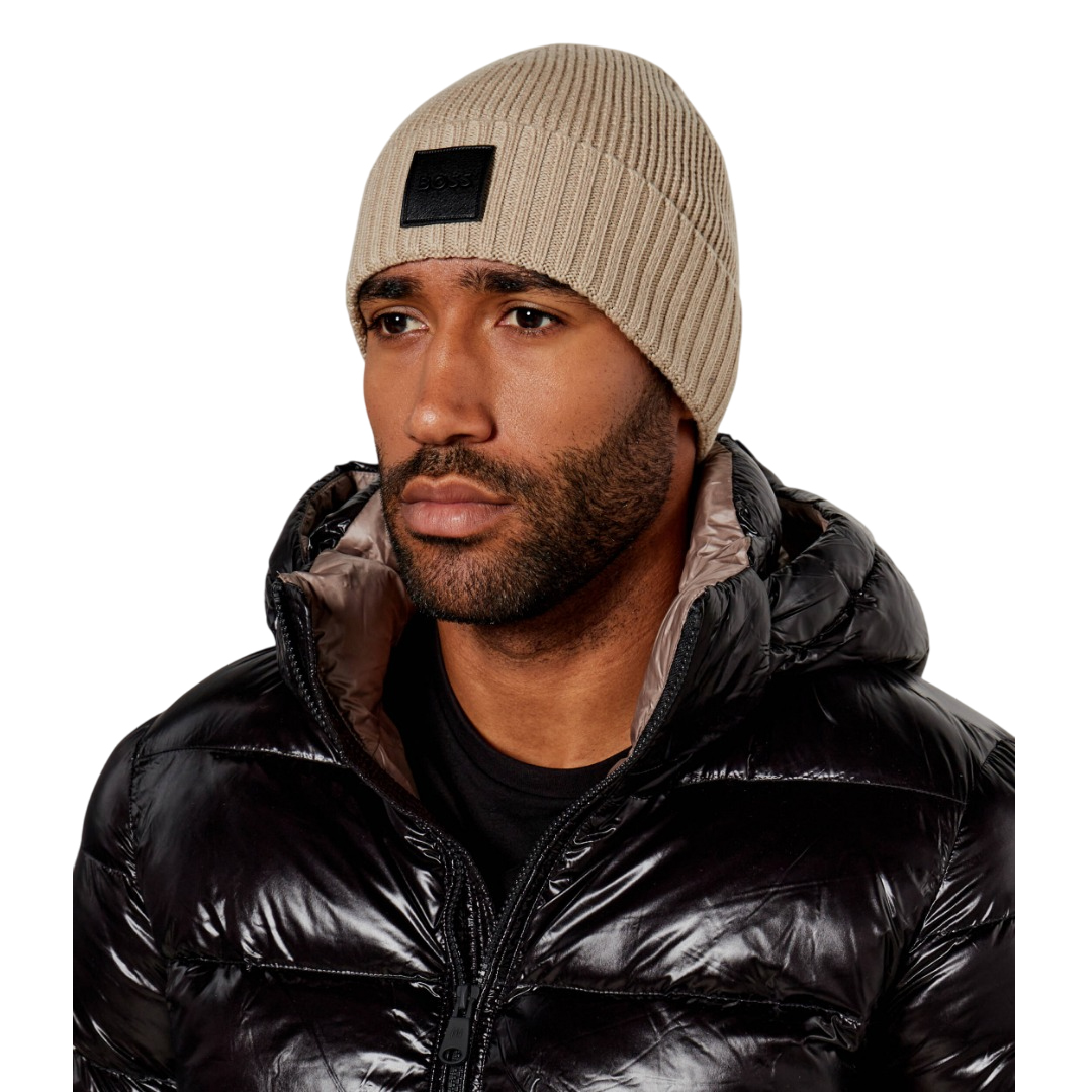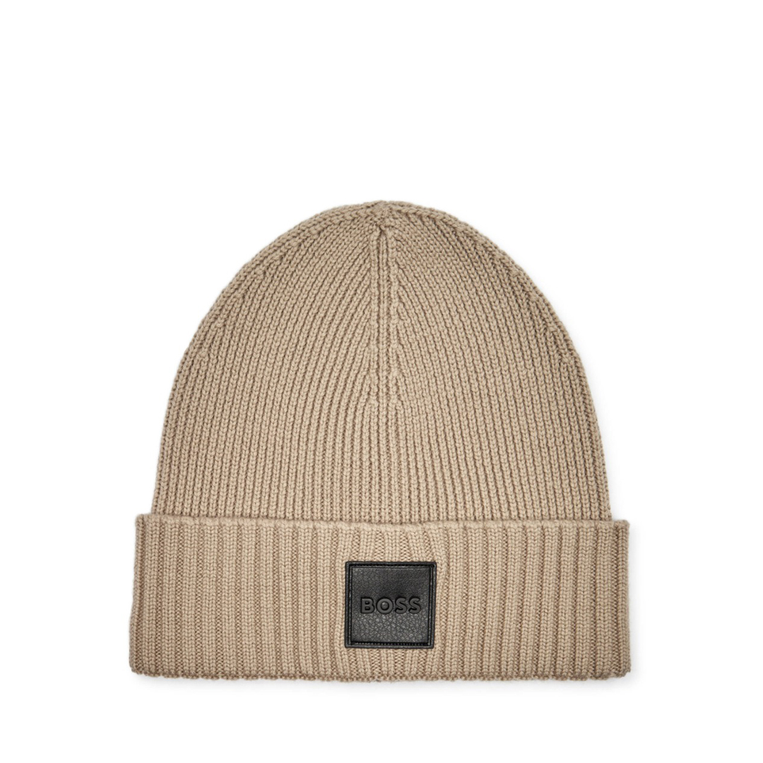 Berretto in lana Flavio BOSS, realizzato in 100% lana vergine e dotato di toppa in pelle e finiture a coste. Facile da indossare e con uno stile senza sforzo per tenerti al caldo nei mesi inve