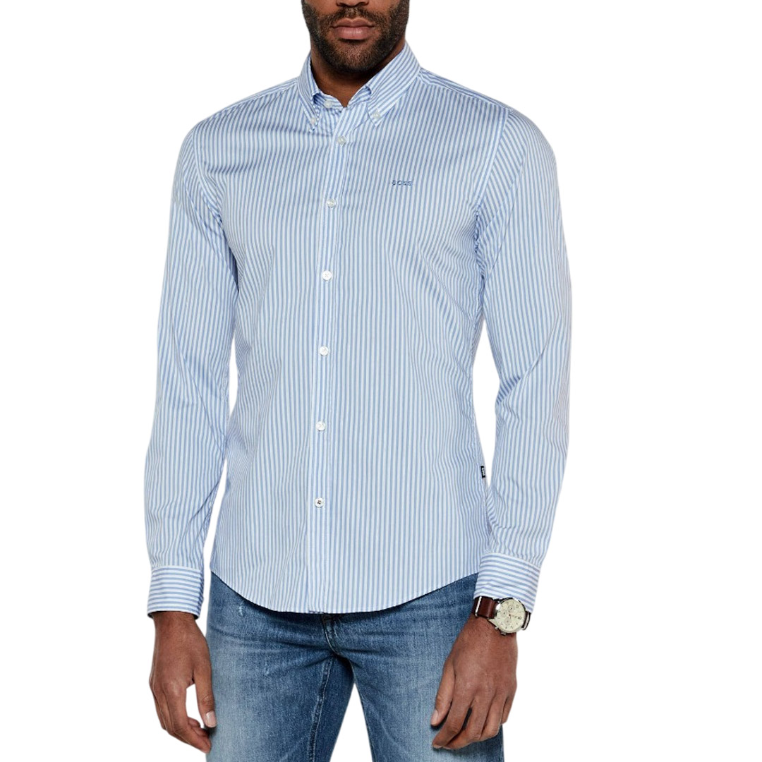 La camicia Boss è un capo essenziale per un guardaroba raffinato, realizzata in morbido cotone di alta qualità. Presenta un elegante logo ricamato e un collo button-down che aggiunge un tocco di classe. Le spalle regolari e le maniche lunghe garantiscono una vestibilità comoda e versatile, mentre la chiusura con bottoni offre praticità. Il fondo con orlo dritto completa il design, rendendola ideale per look sia casual che formali. La fantasia a righe conferisce un tocco di originalità, rendendo questa camicia un must-have per ogni occasione.