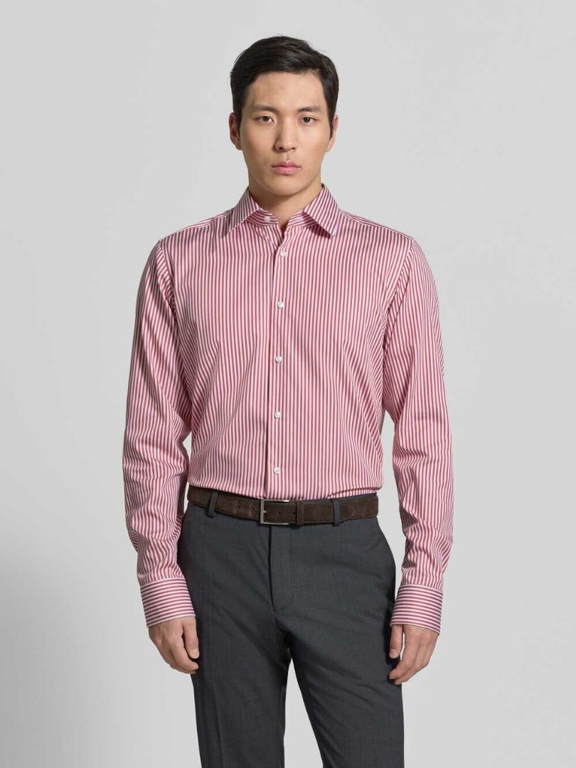 Con il suo motivo a righe classico e la finitura easy-iron, questa camicia BOSS Uomo è la scelta perfetta per ogni look professionale. Vestibilità regolare. Realizzata in satin di cotone traspirante Regular fit Colletto stile Kent Polsini smussati