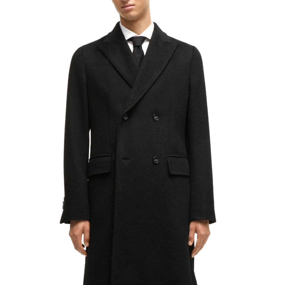 Un elegante cappotto BOSS con revers a lancia. Questo modello doppiopetto dalla vestibilità definita è realizzato in misto alpaca e lana vergine. Slim fit Completamente foderato Lunghezza schiena regolare: 106 cm