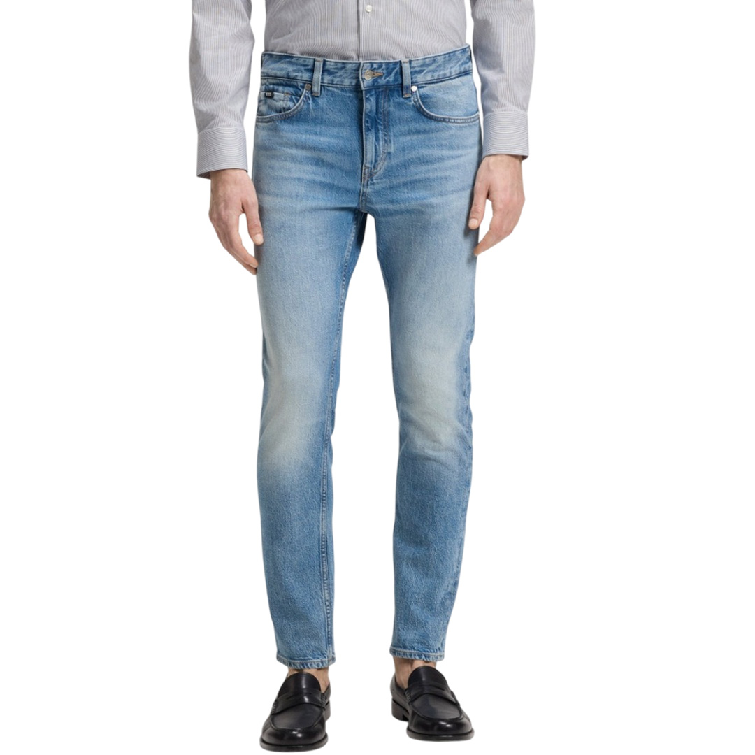 Realizzati in tessuto elasticizzato che aggiunge comfort al taglio aderente, questi jeans BOSS Uomo sono un capo base casual. Fresca tonalità di blu con effetti usurati. Questo prodotto contiene almeno il 60% di materie prime di qualità superiore. Questo prodotto è realizzato per almeno il 60% in cotone proveniente da agricoltura rigenerativa. L'agricoltura rigenerativa dà priorità alla conservazione e al ripristino degli ambienti naturali, con l'obiettivo di migliorare la biodiversità, preservare la qualità dell'acqua e migliorare le condizioni del suolo. Slim fit Vita regolare Chiusura con bottone e zip Tasche davanti in basso: Tasche laterali Slim leg Tasche dietro in basso: Tasca applicata Lunghezza standard Larghezza del piede standard: 35,4 cm