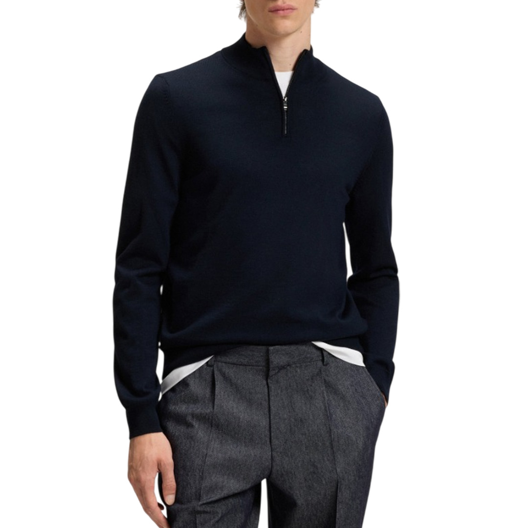 Realizzato in lana vergine per un comfort che dura tutto l'anno, questo maglione BOSS Uomo è un capo base raffinato. Collo con zip per uno stile versatile. Classica vestibilità regular fit. Regular fit Collo con zip Manica lunga Polsini a costine Lunghezza standard
