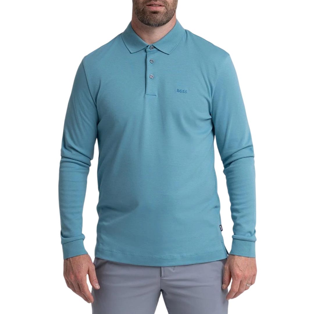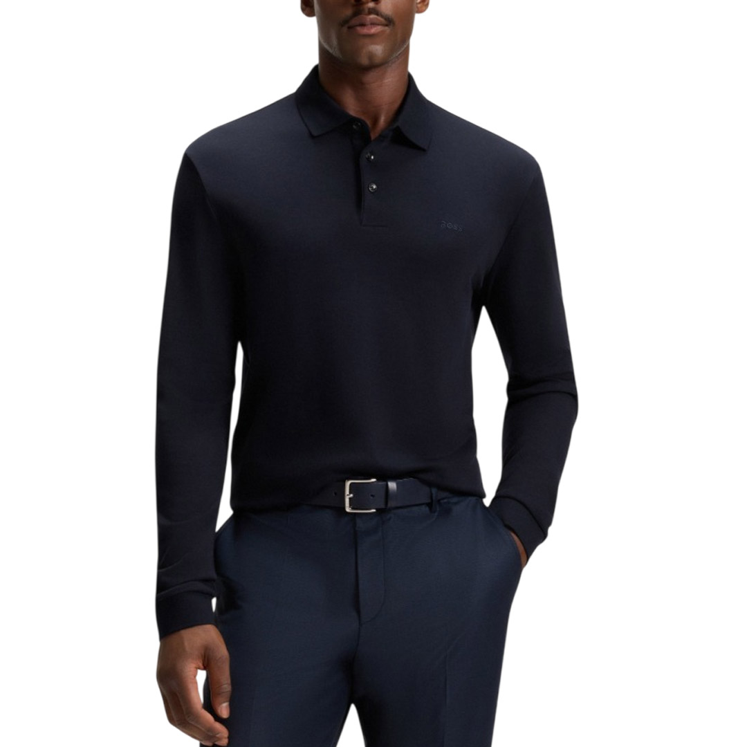 Autentico must del guardaroba maschile, questa polo a maniche lunghe BOSS Uomo è un classico raffinato. Realizzata in morbido cotone con una vestibilità straight fit. Regular fit Colletto a maglia piatta Numero di bottoni: 3 Manica lunga Lunghezza standard