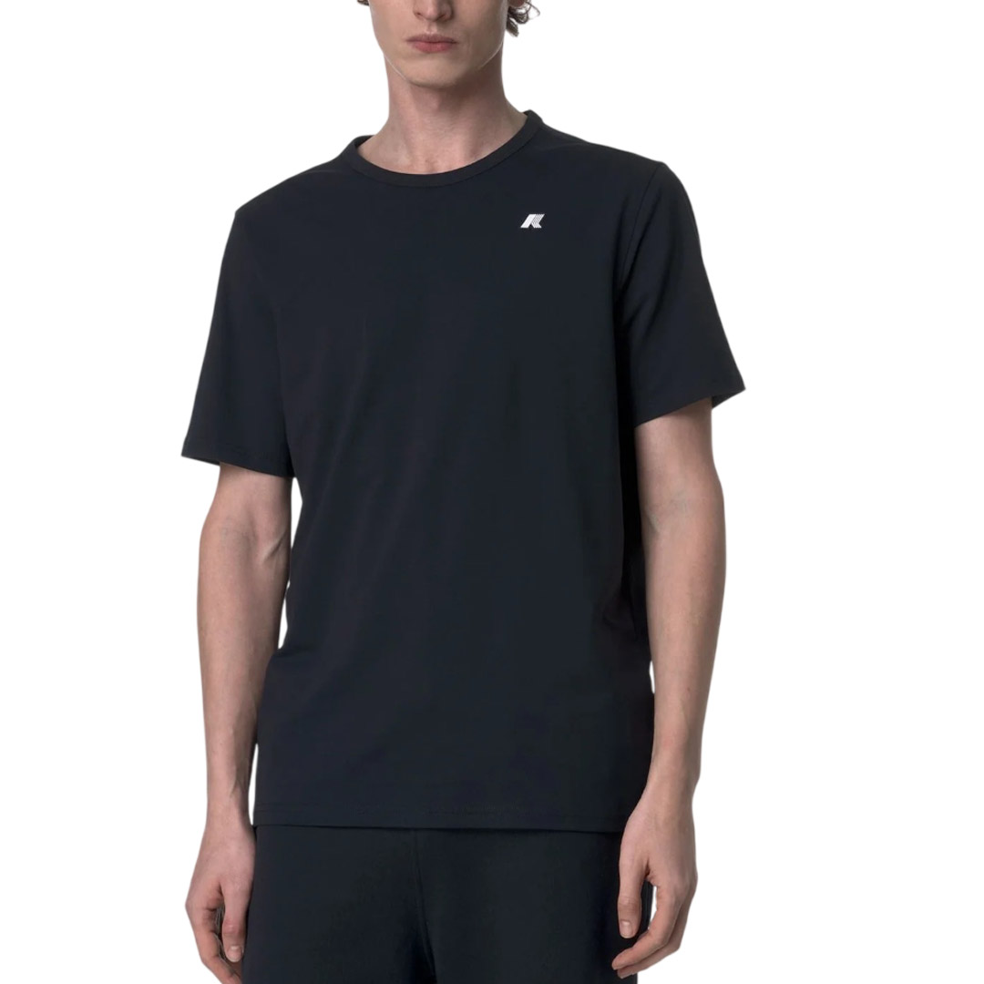 Adame è una t-shirt da uomo realizzata in jersey leggero di cotone stretch, morbido ed estremamente flessibile. Si caratterizza per il design pulito dalla linea asciutta e per il dettaglio sul retro personalizzato con i colori K-Way. Tessuto jersey leggero elasticizzato Fitting slim Logo applicato bianco in silicone
