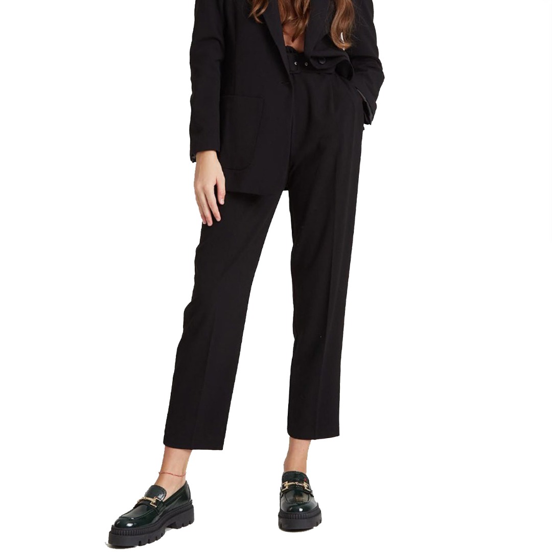 Passanti per la cintura Vita alta Cintura in vita con fibbia Tasca a filetto Dettagli logo Pieghe stirate Due tasche laterali Chiusura con gancio e zip a scomparsa