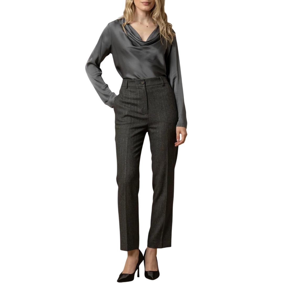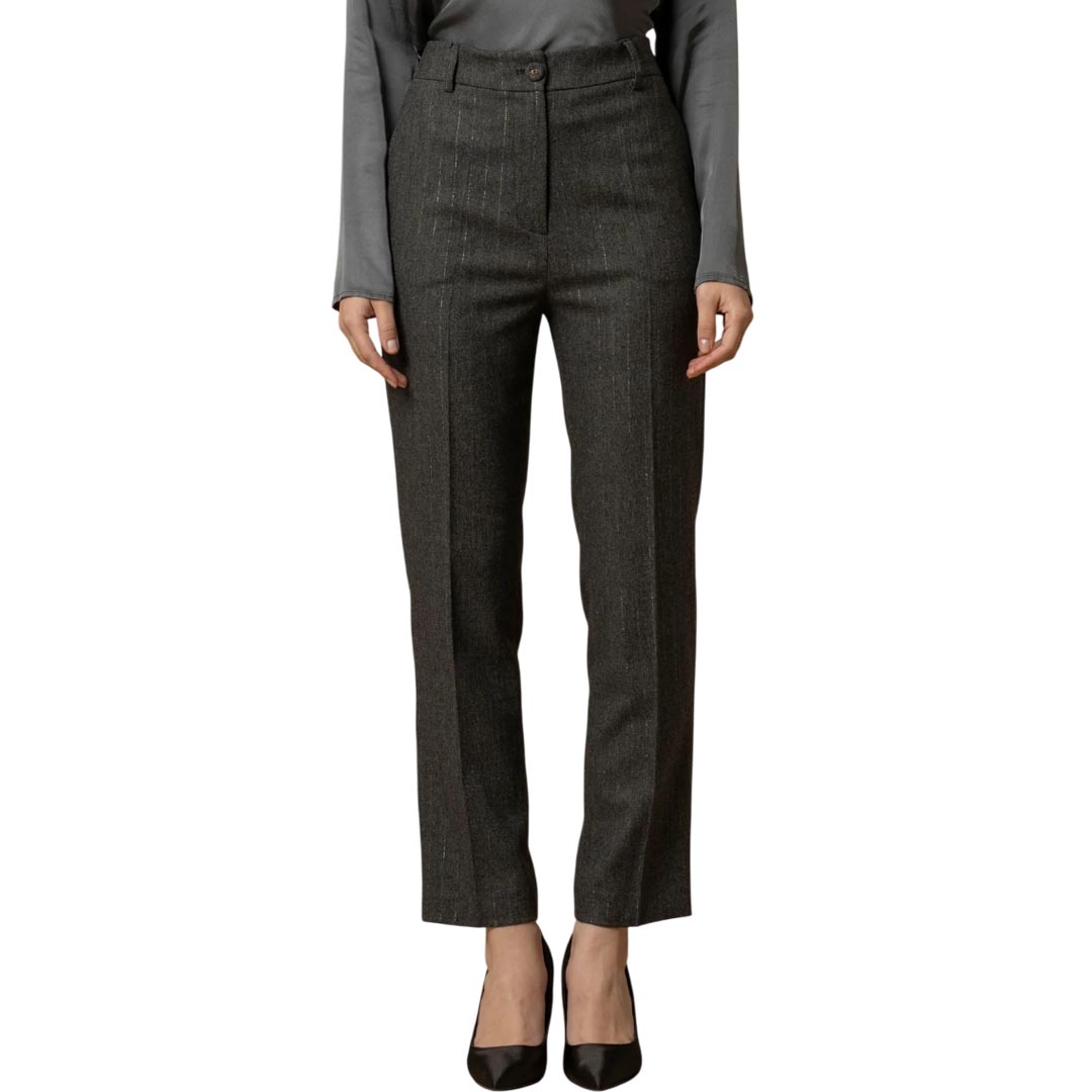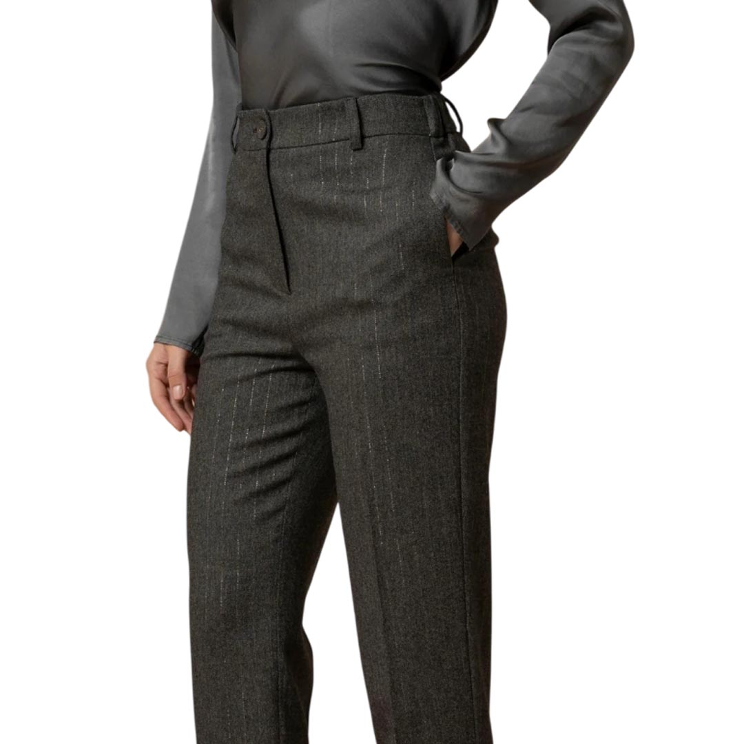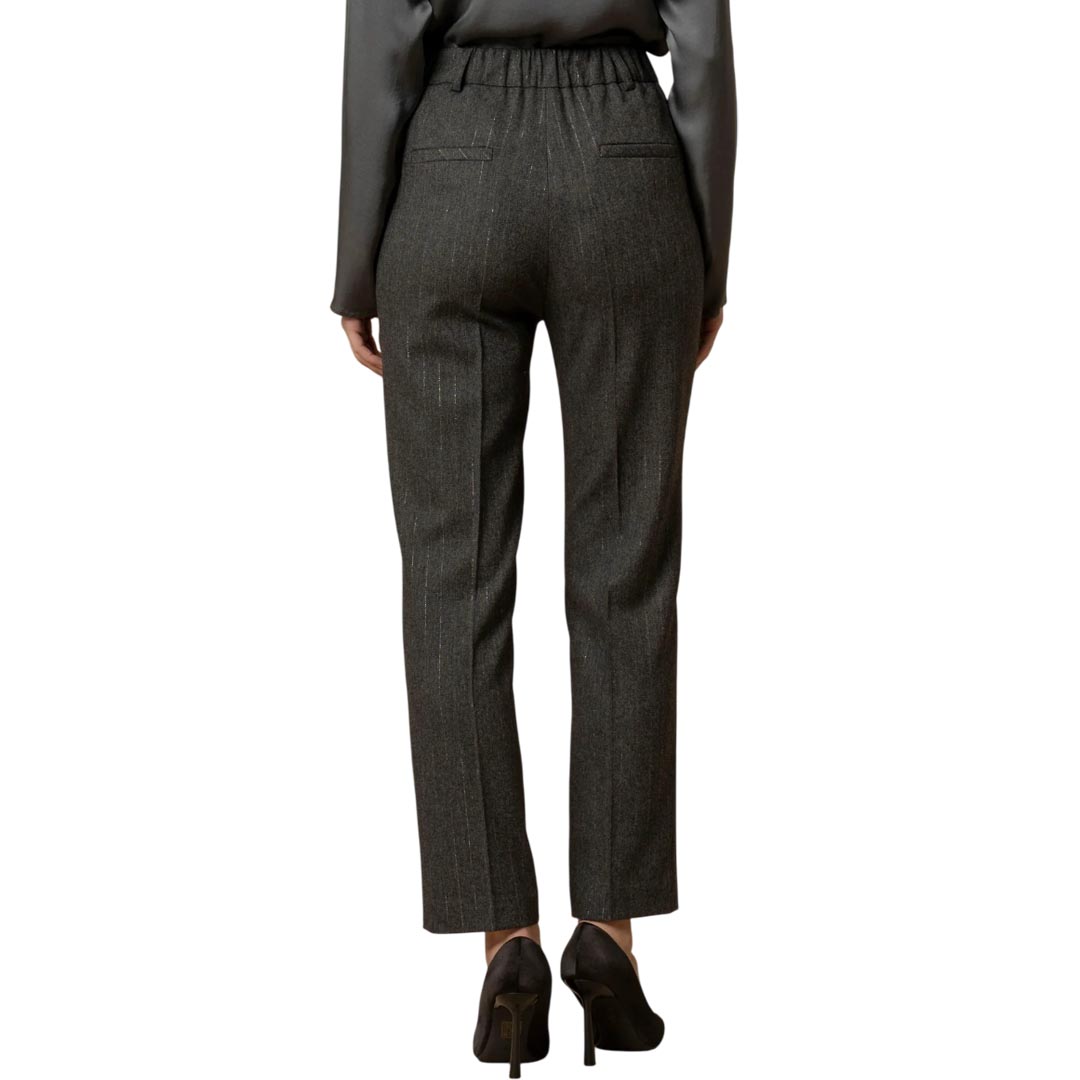 Il taglio dritto di questi pantaloni della capsule Pure Verve è impreziosito dalla riga gessata in lurex. Il capo, caratterizzato da un piacevole stile metropolitano, presenta fit dritto, piega stirata e chiusura con zip e bottone in tessuto.
