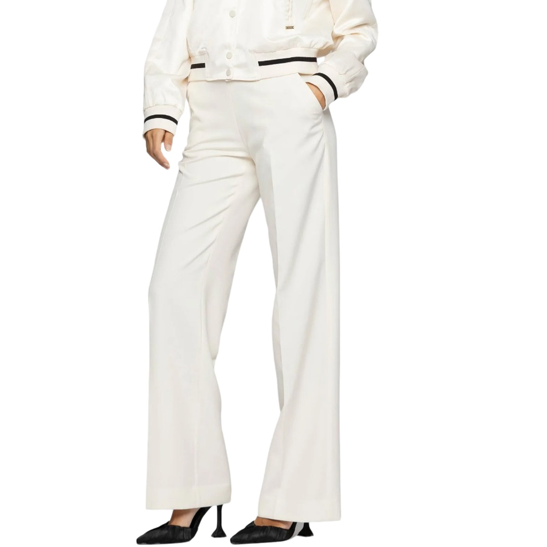 Eleganti pantaloni da donna con taglio dritto firmati Kocca, caratterizzati da pieghe sul davanti e vita alta.